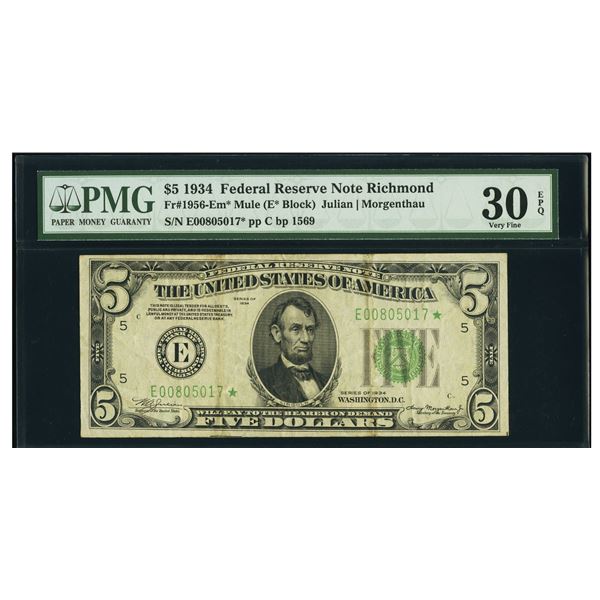 One 1934 $5 St Louis FRN PMG 66EPQ.