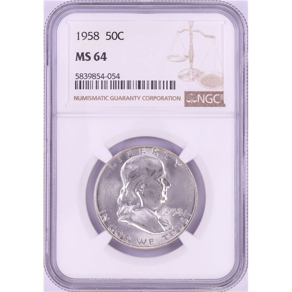 One 1958 Franklin Half Dollar Coin NGC MS64.
