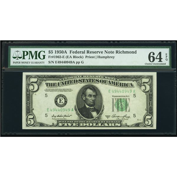 One 1950A $5 Richmond FRN PMG 64EPQ.