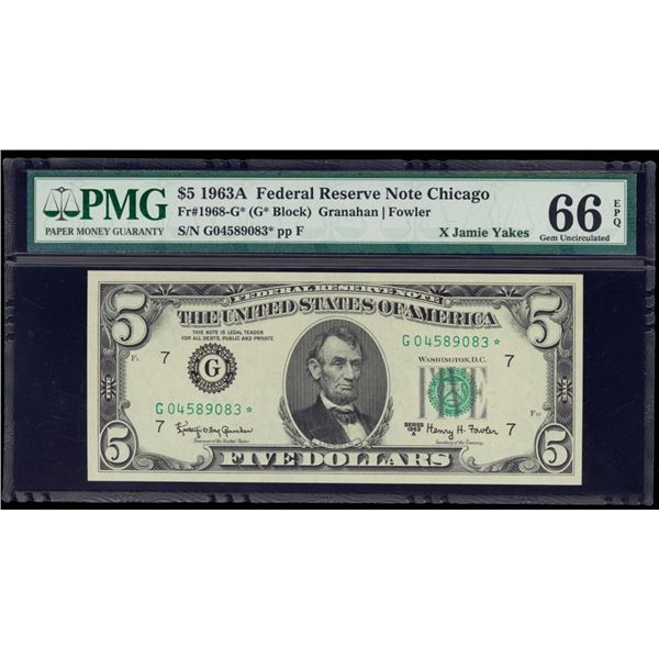 1963A $5 STAR Chicago FRN PMG 66EPQ