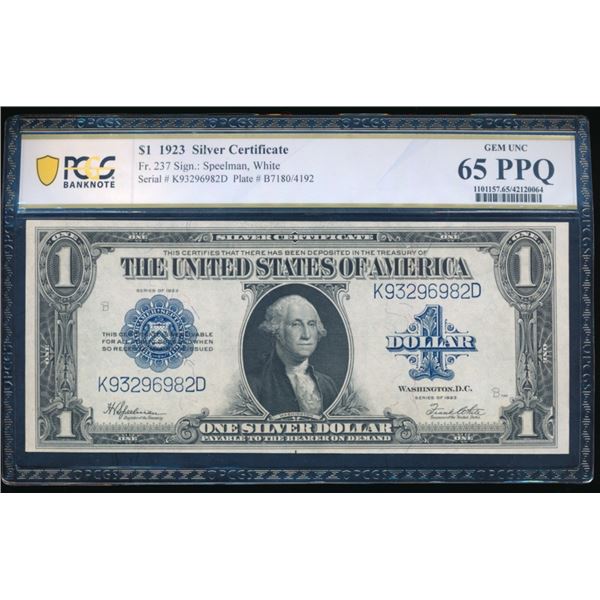 One 1923 $1 Silver Certificate PCGS 65PPQ.