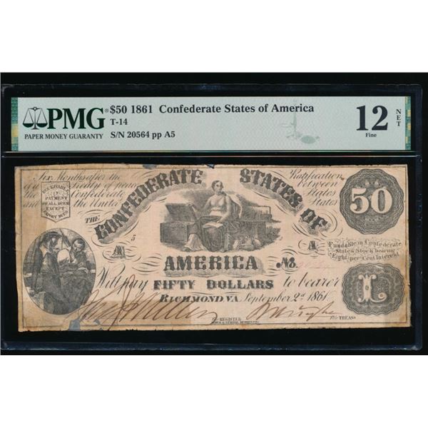 1861 $50 T-14 Confederate PMG 12NET96 - 1861 $50 T-14 Confederate PMG 12NET