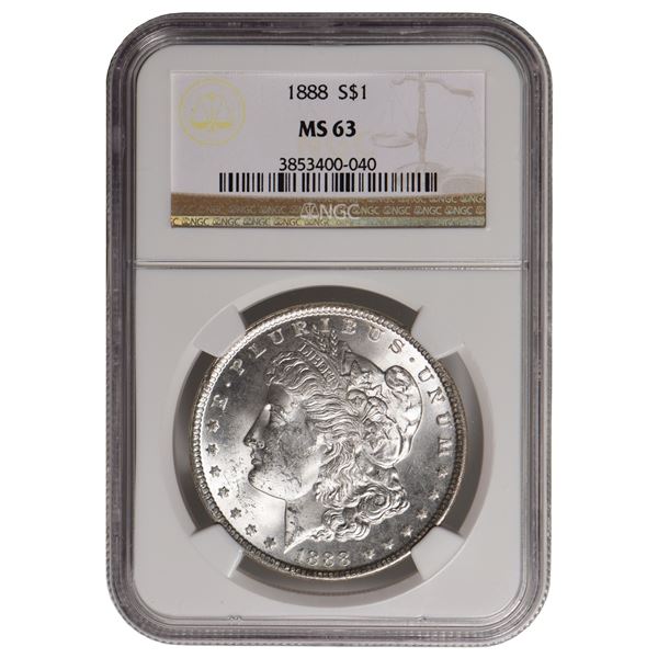 1888 $1 Morgan Silver Dollar NGC MS633 - 1888 $1 Morgan Silver Dollar NGC MS63