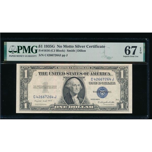 1935G $1 Silver Certificate PMG 67EPQ4 - 1935G $1 Silver Certificate PMG 67EPQ