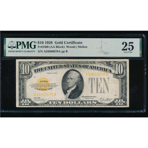 1928 $10 Gold Certificate PMG 257 - 1928 $10 Gold Certificate PMG 25