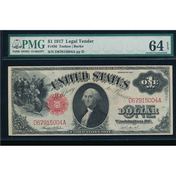 One 1917 $1 Legal Tender Note PMG 64EPQ.