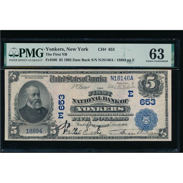 1902 $5 Yonkers NY National PMG 63221 - 1902 $5 Yonkers NY National PMG 63