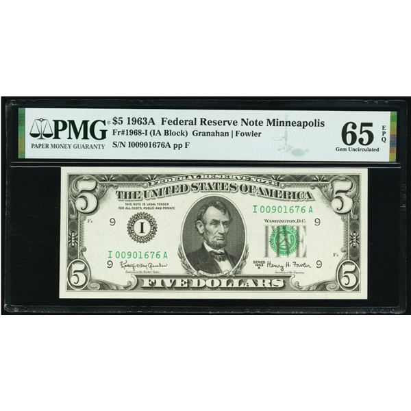 1963A $5 Minneapolis FRN PMG 65EPQ223 - 1963A $5 Minneapolis FRN PMG 65EPQ