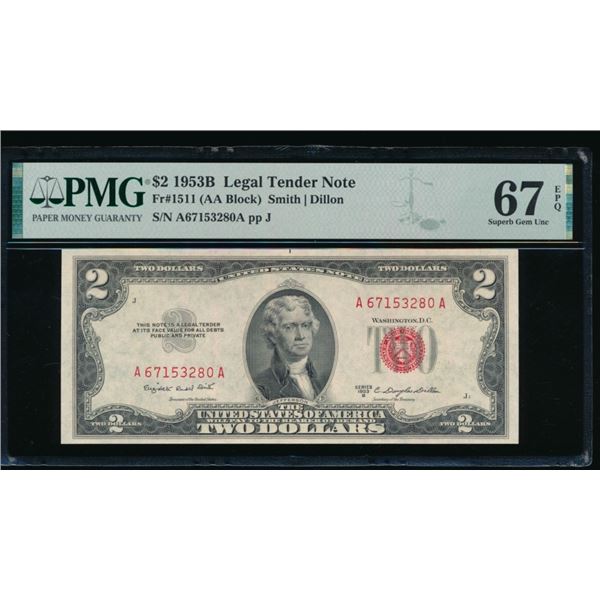 One 1953B $2 Legal Tender Note PMG 67EPQ.