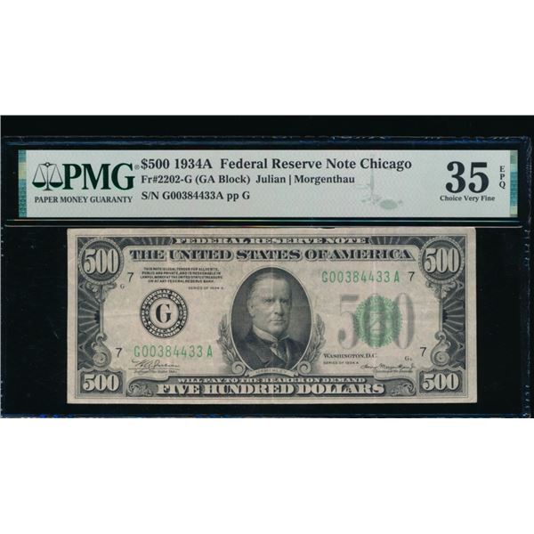 One 1934A $500 Chicago FRN PMG 35EPQ.