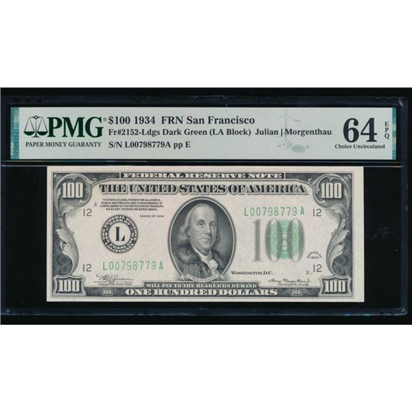 One 1934 $100 San Francisco FRN PMG 64EPQ.