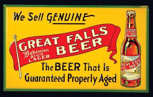 Great Falls Beer Beveled Embossed Tin over Cardboard Sign. Near mint condition. 15 X 9 inches.