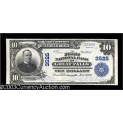 <TABLE cellSpacing=0 cellPadding=0 width="100%" bgColor=#000000 border=0><TBODY> <TR><TD width="100%"><TABLE cellSpacing=1 cellPadding=3 width="100%" border=0><TBODY><TR><TD width="100%" bgColor=#79735c><FONT face=arial color=#ffffff size=3><B>Description</B> </FONT></TD></TR><TR><TD width="100%" bgColor=#ffffff><FONT face=arial size=2><B>Great Falls, MT</B></I> - $10 1902 Plain Back Fr. 626 <B>The First NB</B></I> Ch. # 3525<BR>Large notes from this bank, while hardly common, are not exceptionally rare, but examples from here in this grade are almost impossible to obtain. <B>Very Choice Crisp Uncirculated,</B></I> with bright white paper and sharp purple signatures, an exceptional Montana note which would easily grade gem but for a bottom margin that strays a bit close to the design at the left edge. (2,000-4,000 ) </FONT></TD></TR></TBODY></TABLE></TD></TR></TBODY></TABLE><BR><TABLE cellSpacing=0 cellPadding=0 width="100%" bgColor=#000000 border=0><TBODY><TR> Important notice: Heritage usually auctions material at the rate of 200-250 lots per hour. On some occasions eBay Live bid software or the Internet may not be able to keep up with the pace of the auction. We recommend placing a realistic absentee bid now as insurance to avoid disappointment. Occasionally the auctioneer may eliminate or reject an eBay Live bid, and the auctioneer may also reopen a lot after the close of the eBay live bidding (usually because we missed an audience bid), and may reject your bid even if it shows you as the winning bidder. By bidding via eBay Live, you agree that Heritage may award the lot to another bidder at its sole discretion under the circumstances described above or any other reasonable circumstances. Also please note that all Heritage lots purchased through eBay Live carry a 20% Buyer's Premium. Please make sure you read the Terms and Conditions before you bid.</TR></TBODY></TABLE>