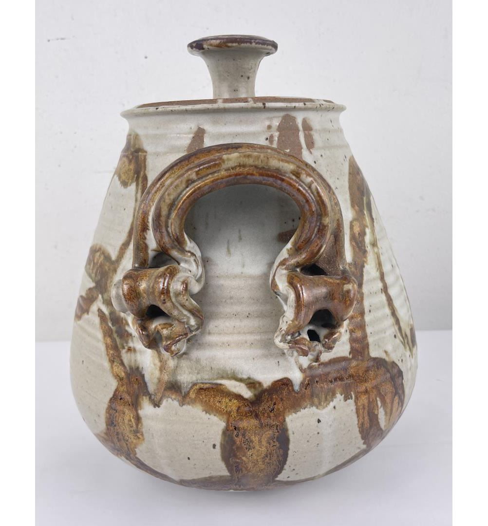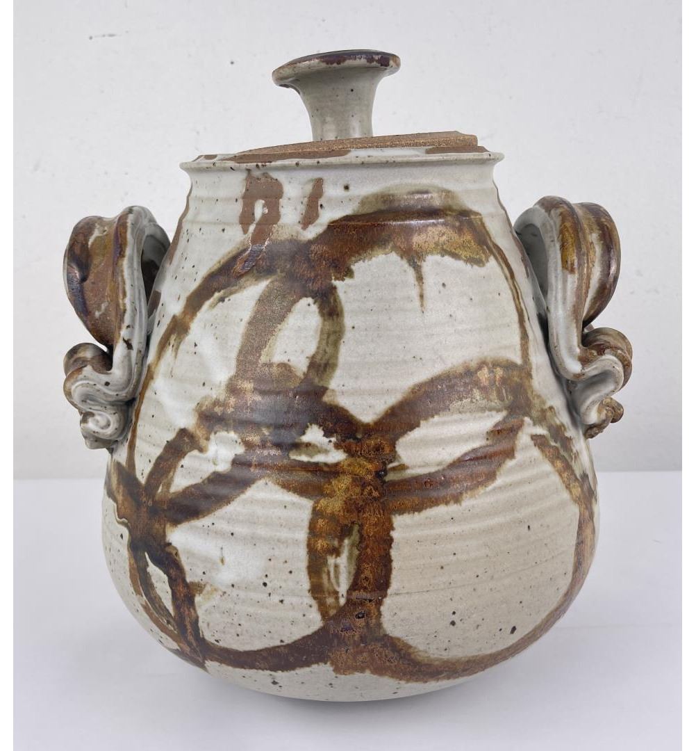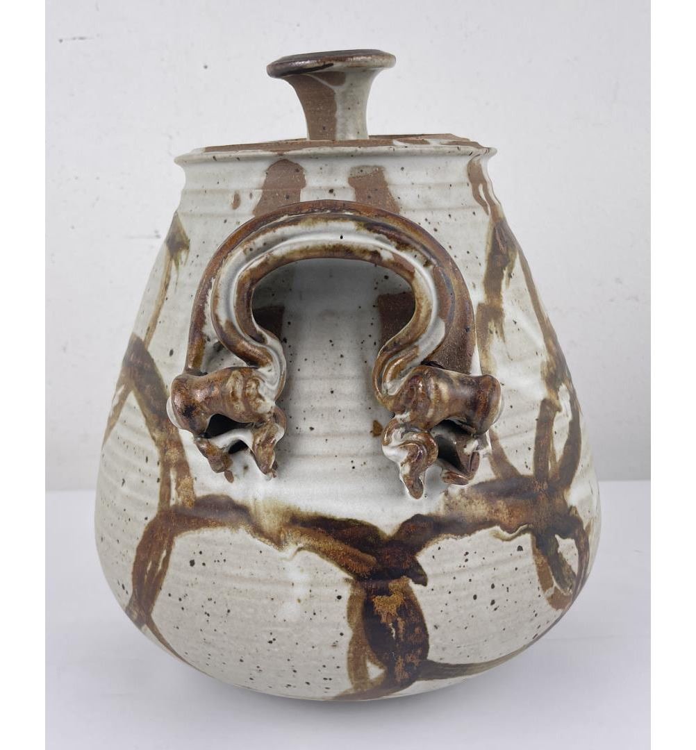 Beautifully made storage jar. Made by Dean & Sam Borchers of Great Falls Montana. 12 3/4" tall, 11 1/2" wide.