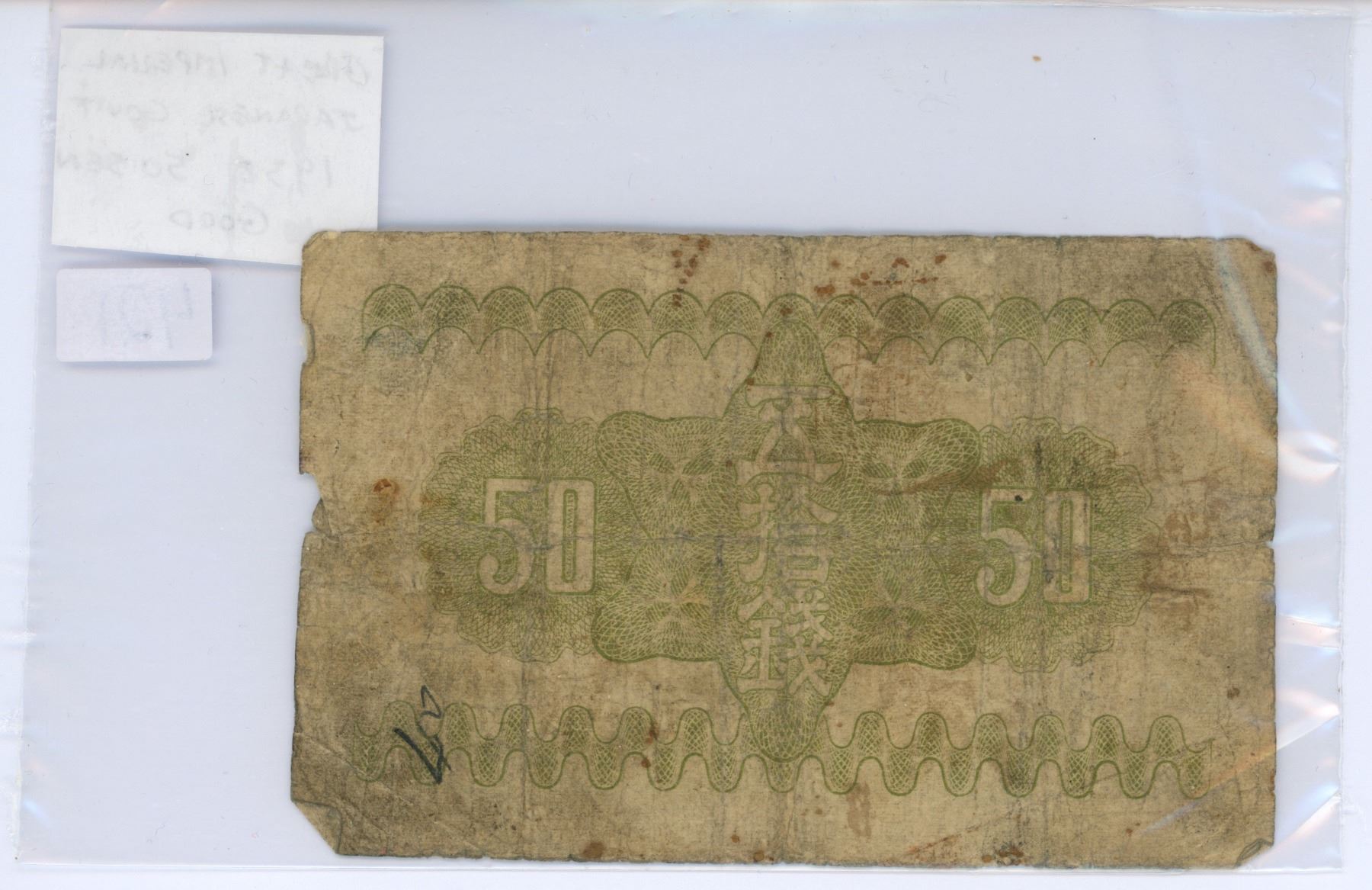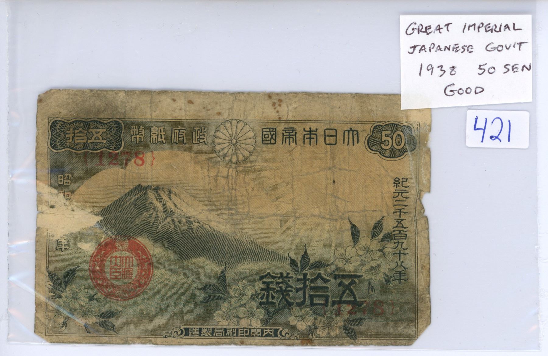 Great Imperial Japanese Government 1938 50 Sen. Mount Fuji. Good.