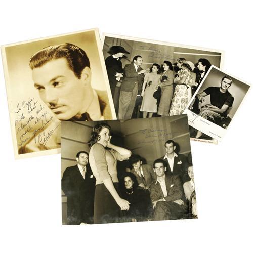 <B>Great Leading Men Signed Photos.</B></I> Includes two b&w 8" x 10" photos inscribed and signed by Edward G. Robinson (one with the striking Robert Ryan seated in the background), a b&w headshot inscribed and signed by Cesar Romero, and a b&w postcard signed by Tyrone Power. The photos are in Fine to Very Fine condition with moderate tanning and mild wear, and the postcard is in Excellent condition with mild wear.<BR><BR><b>Shipping:</b> Flat Material, Small (<a target="_blank" href="http://www.heritageauctions.com/common/shipping.php">view shipping information</a>)