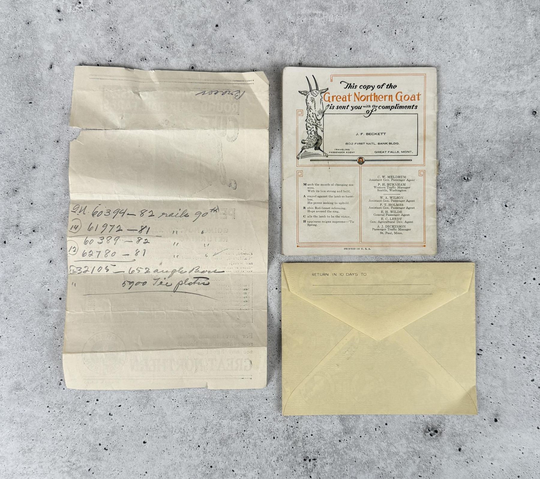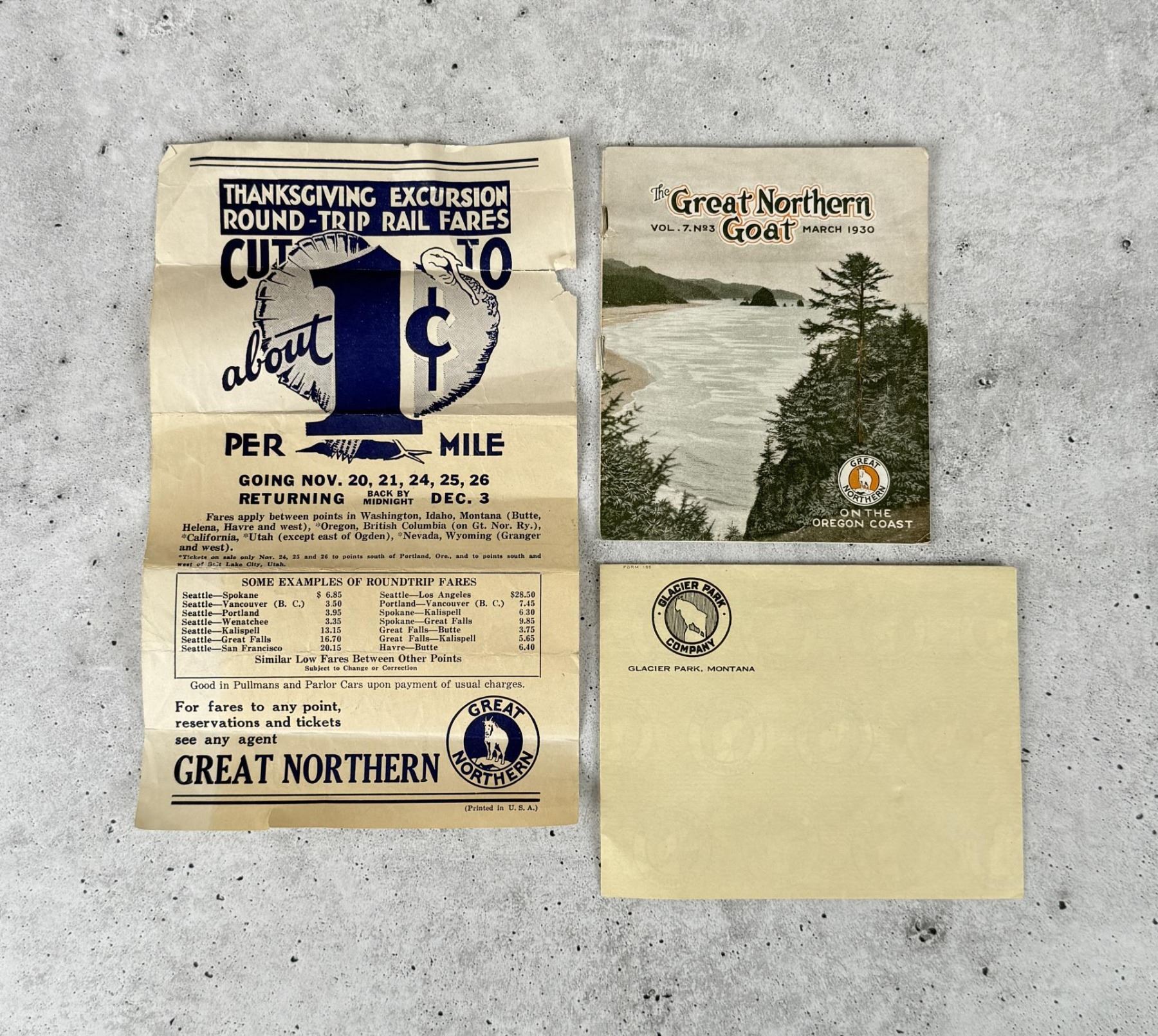 Also included is a Glacier Park Company Envelope.