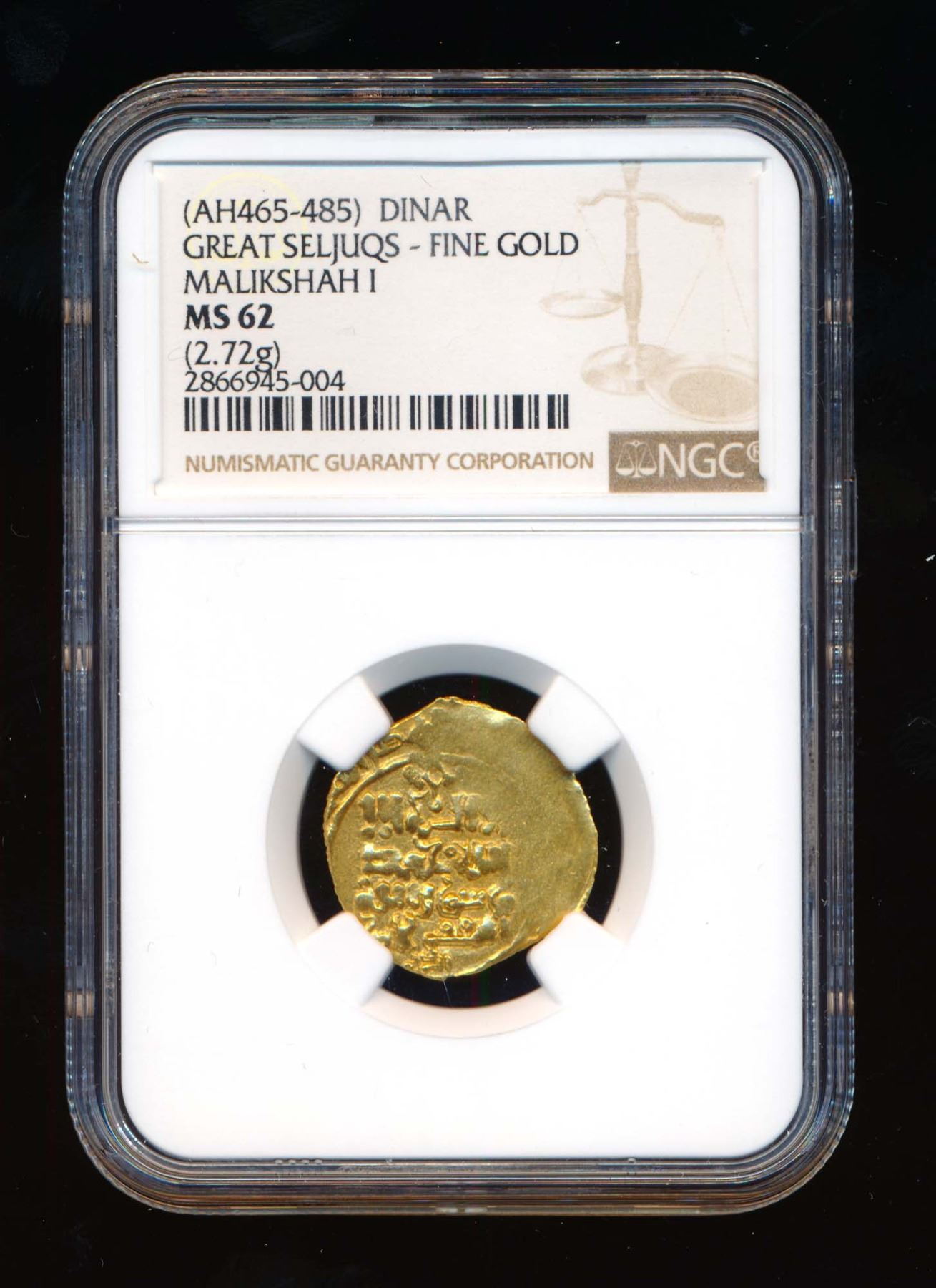 Great SELJUKS Fine Gold Dinar AH465-485 Malikshah I NGC MS-62