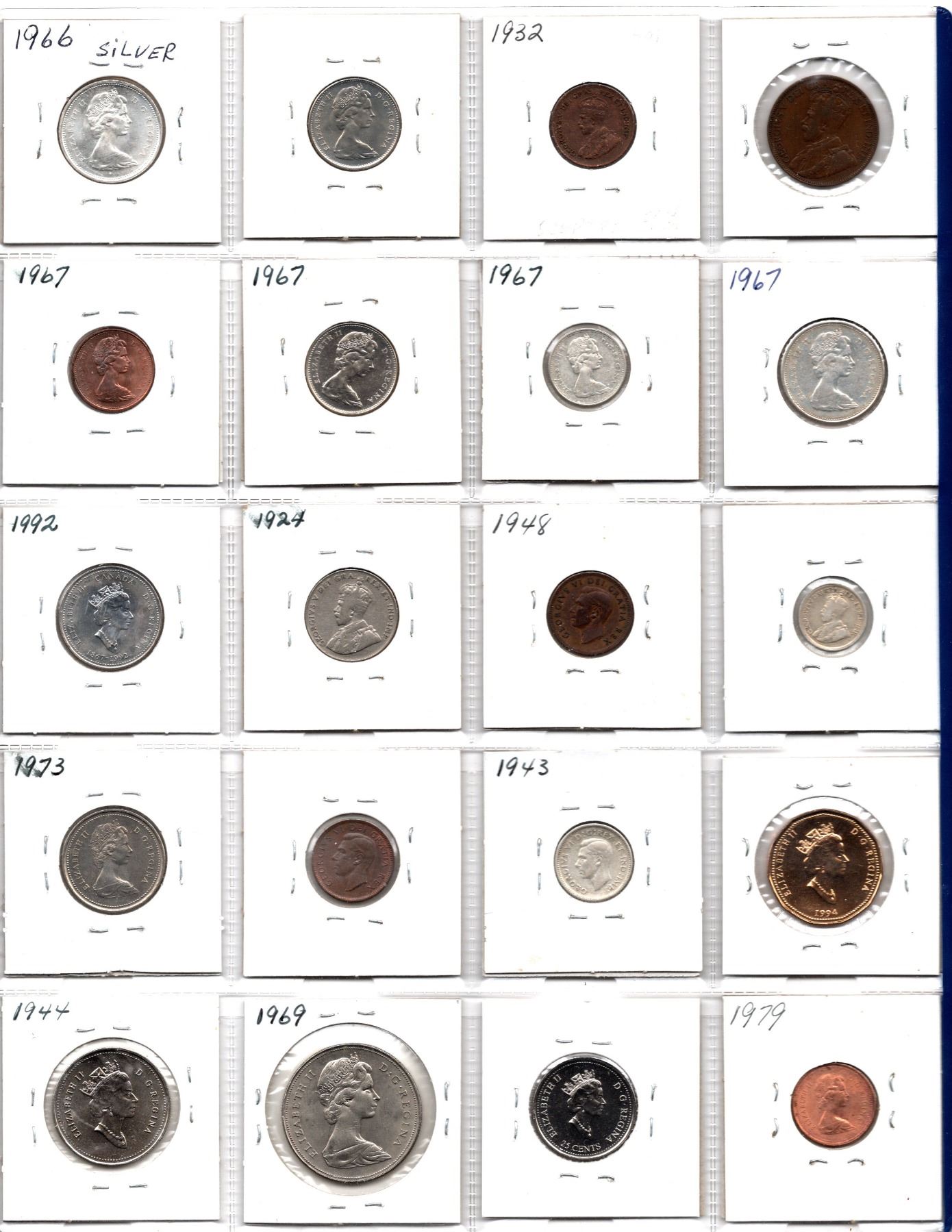 Great Starter Set of 20 Individually Carded Coins 1919 to 1999 (Some Rare and Hard to Find)