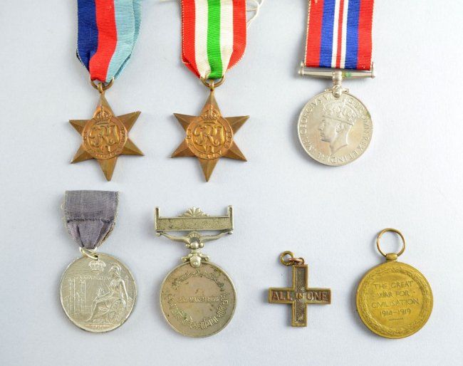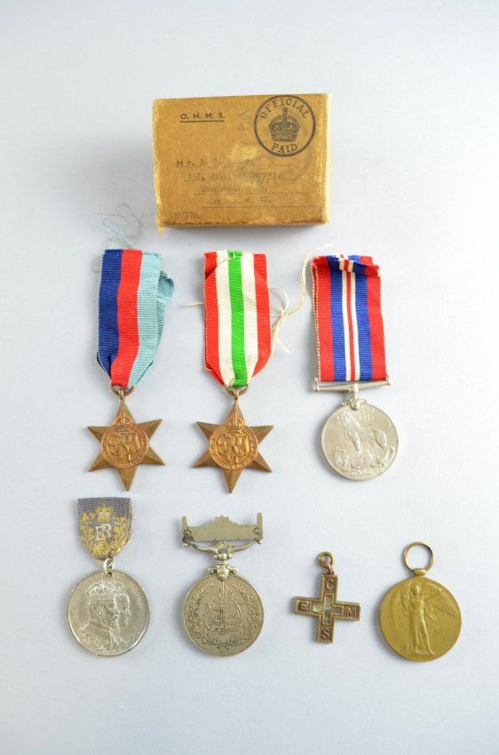 Great War For Civilisation Medal 1914-1919 to GS-16992 PTE. G. RHEES. R. FUS, 1939-1945 Star, Italy Star, 1939-1945 medal, 1902 commemorative medallion, Pakistan inauguration medal, and a small cross marked CMSE,