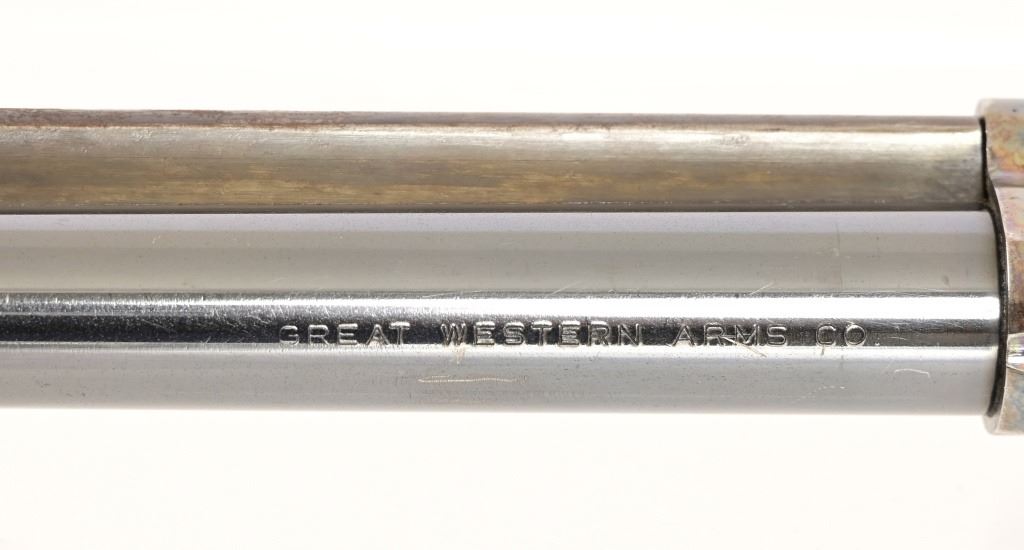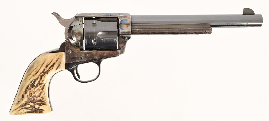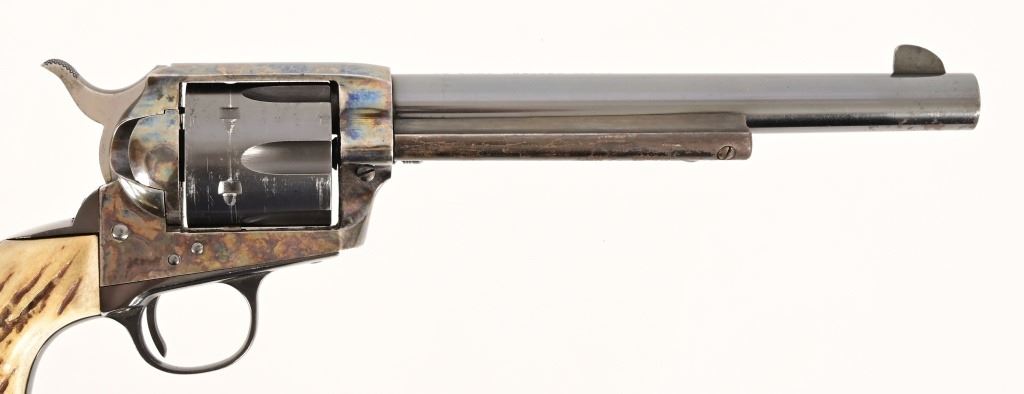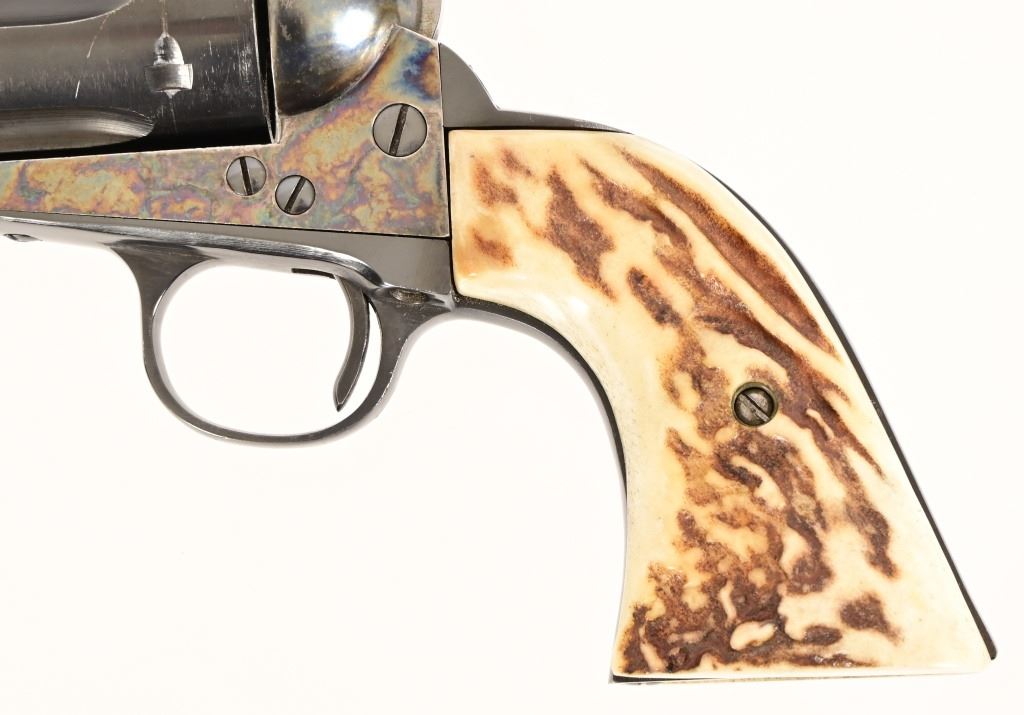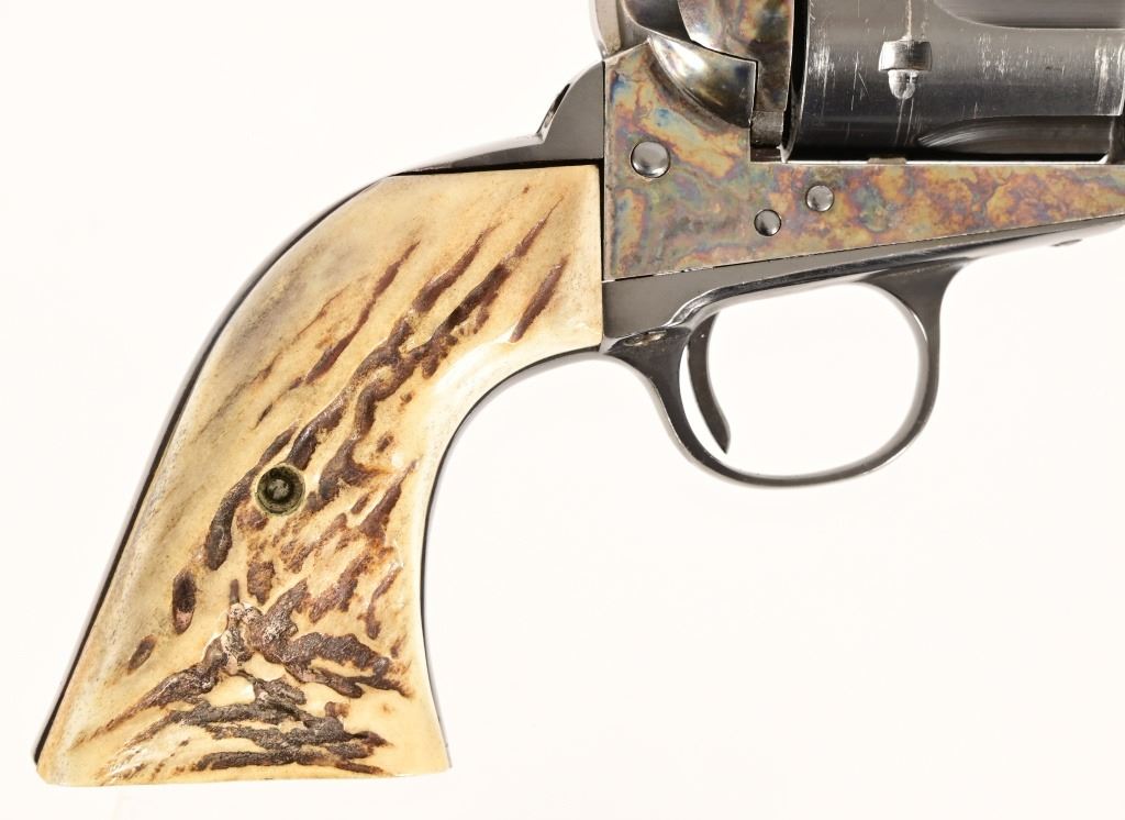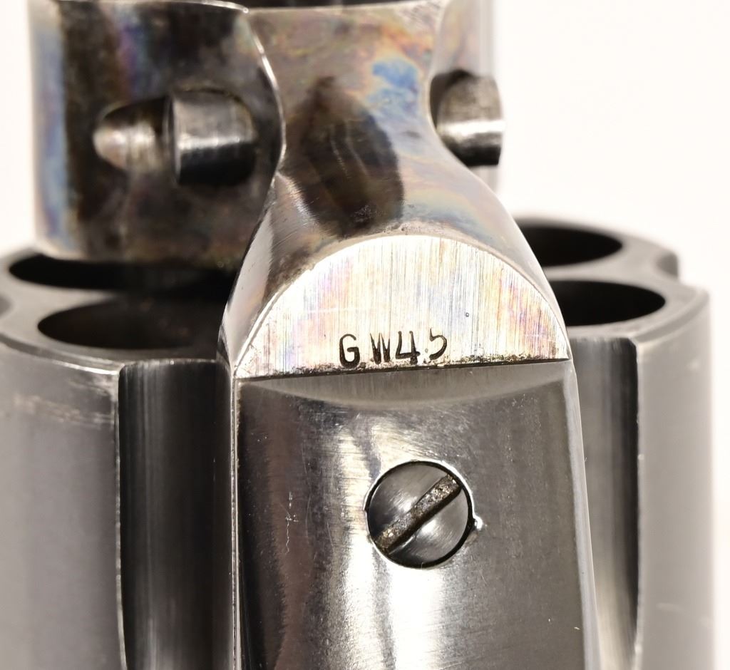 S/N GW45. Made by Pieta. 7.5" barrel, tight action. Minor rust on ejector housing. Faux stag plastic grips. Modern.