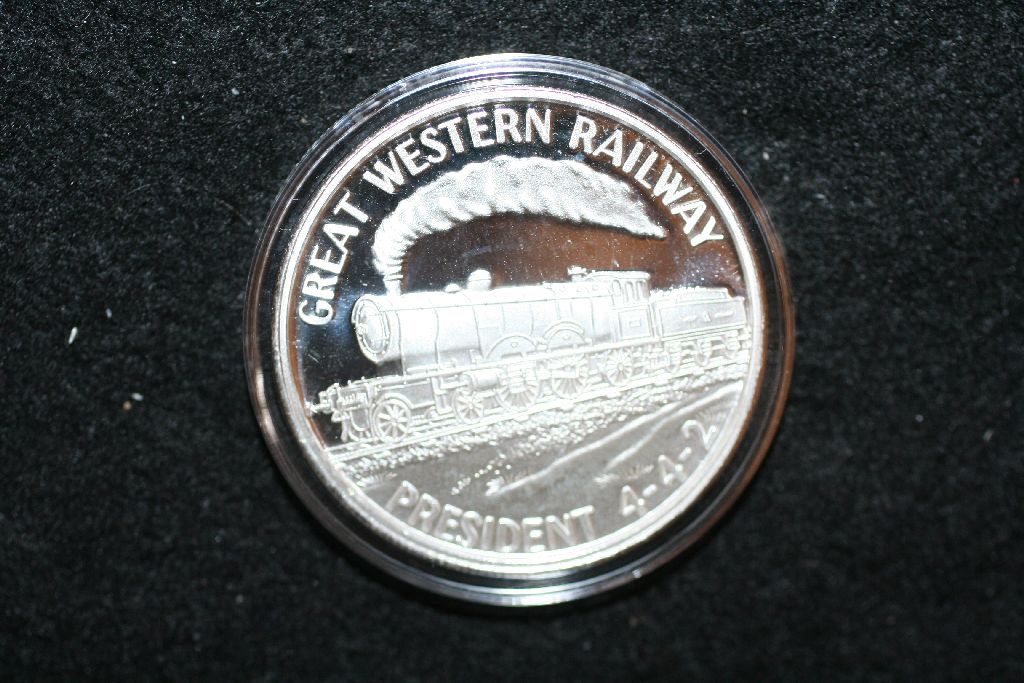 Great Western Railway "President 4-4-2" Train Silver Round; .999 Fine Silver 1 Oz.