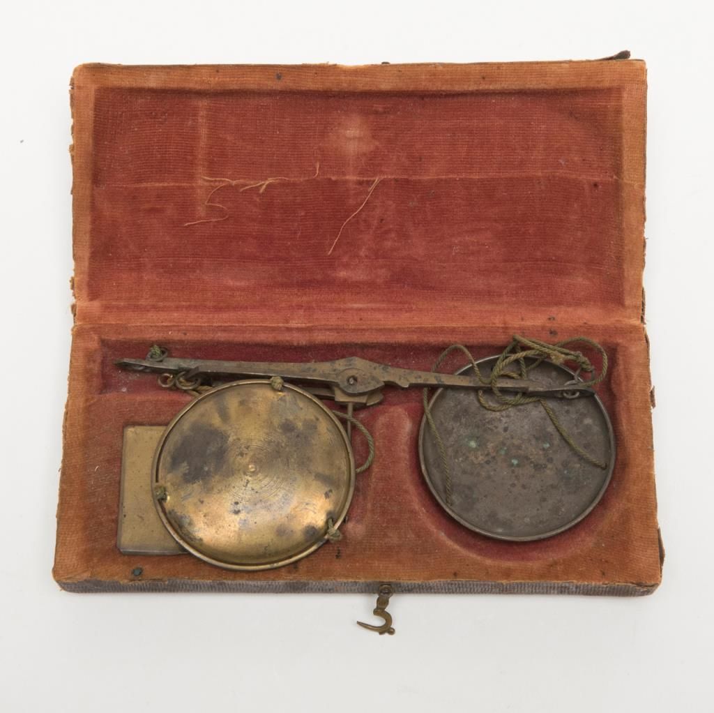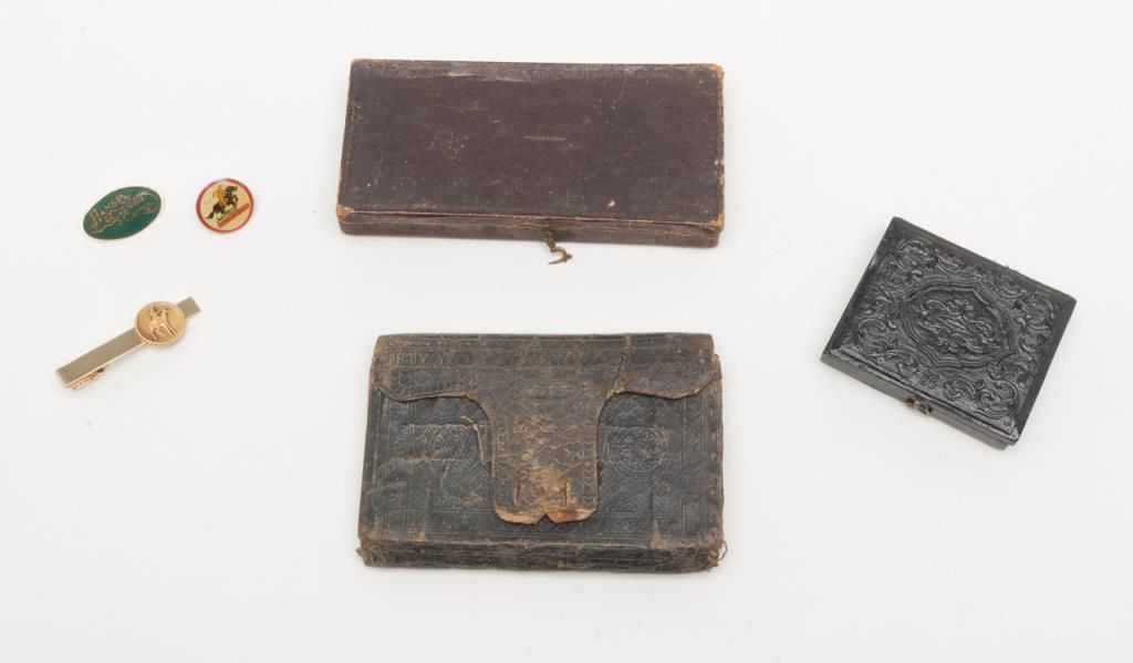 Great collector’s lot of a portable gold scale, a small daguerreotype in case and a pocket diary. From the estate of Joe Kiser. Est.: $200-$400.