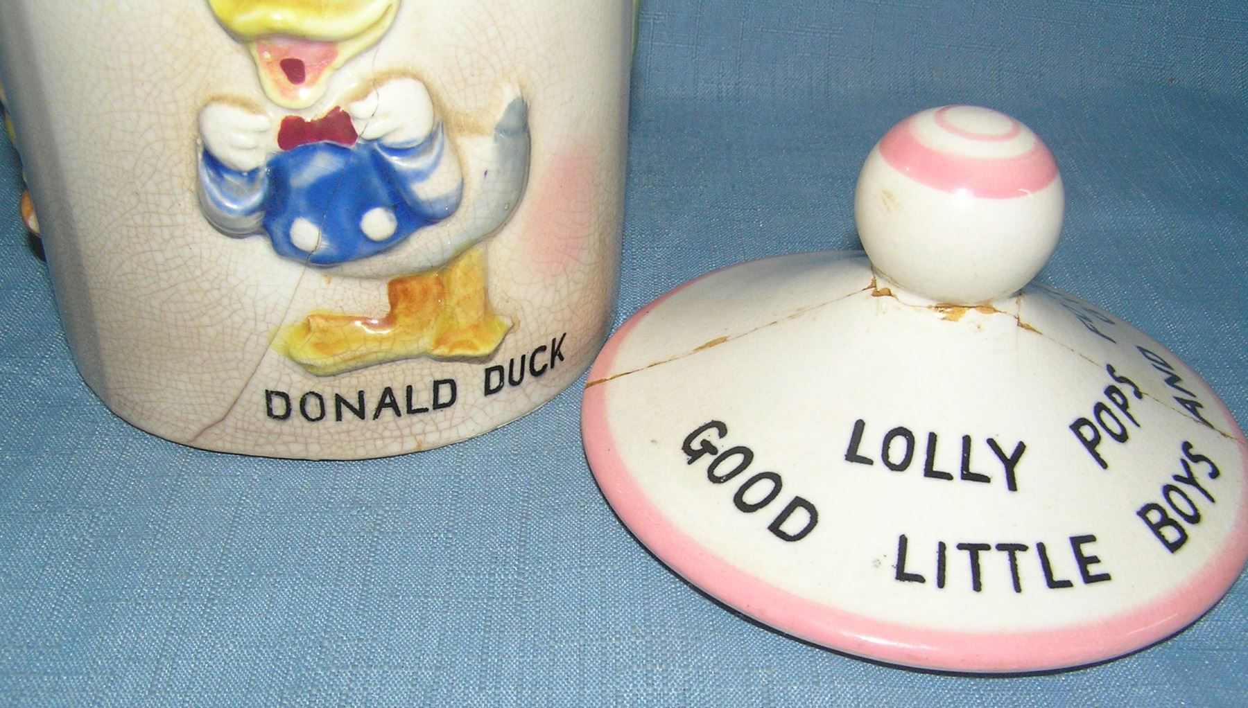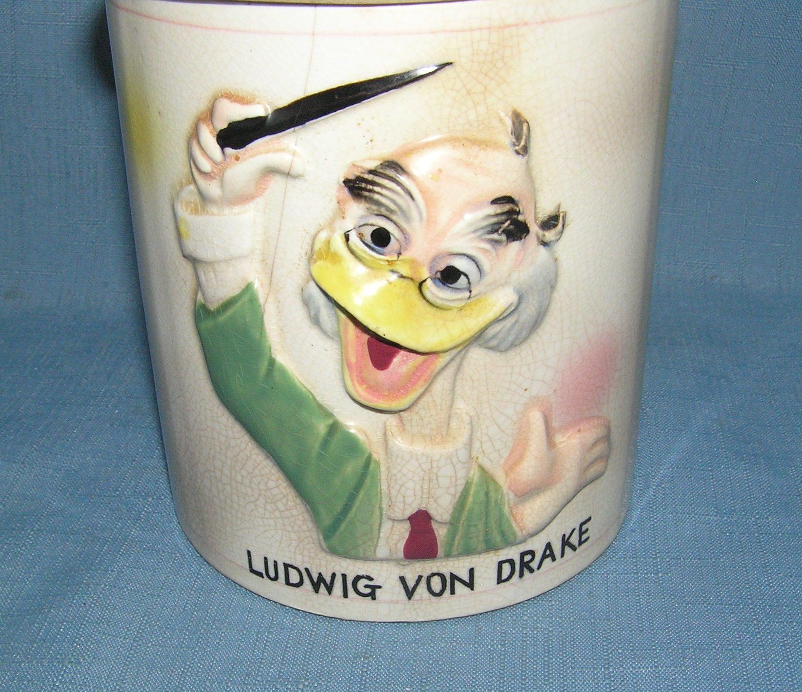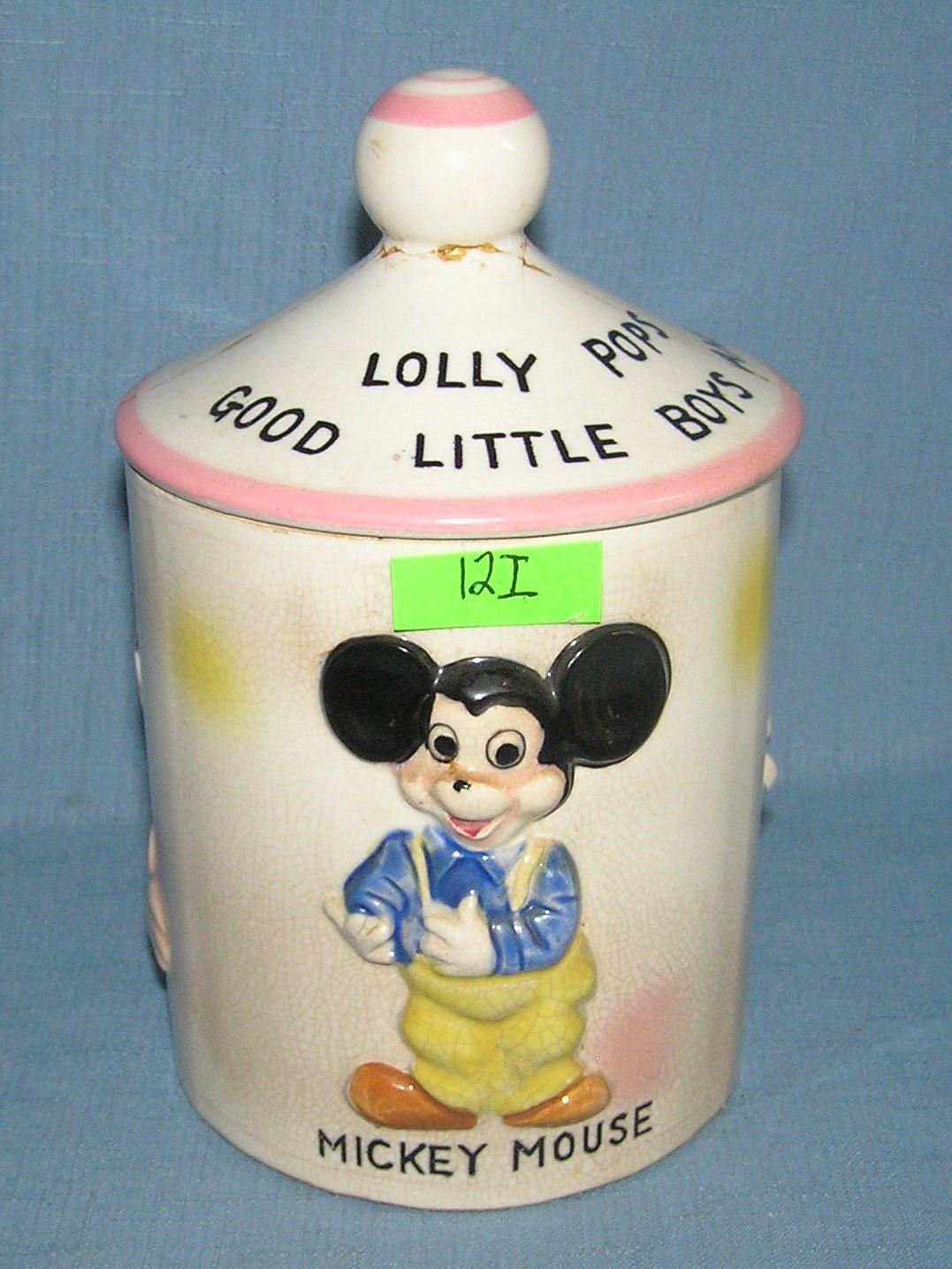 Great early Lollipop container all porcelian featuring Mickey Mouse, Dondald Duck and Ludwig Von Dra