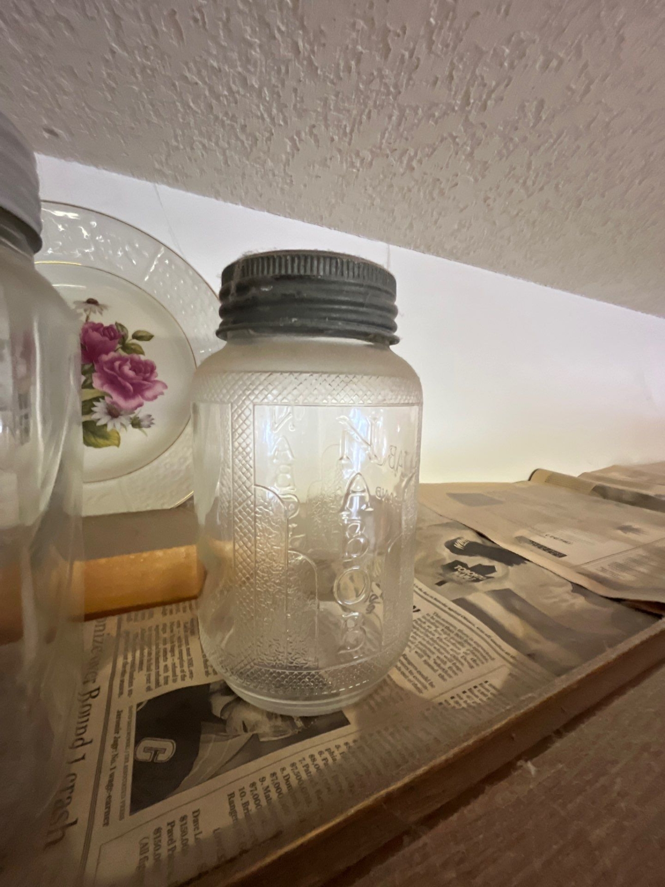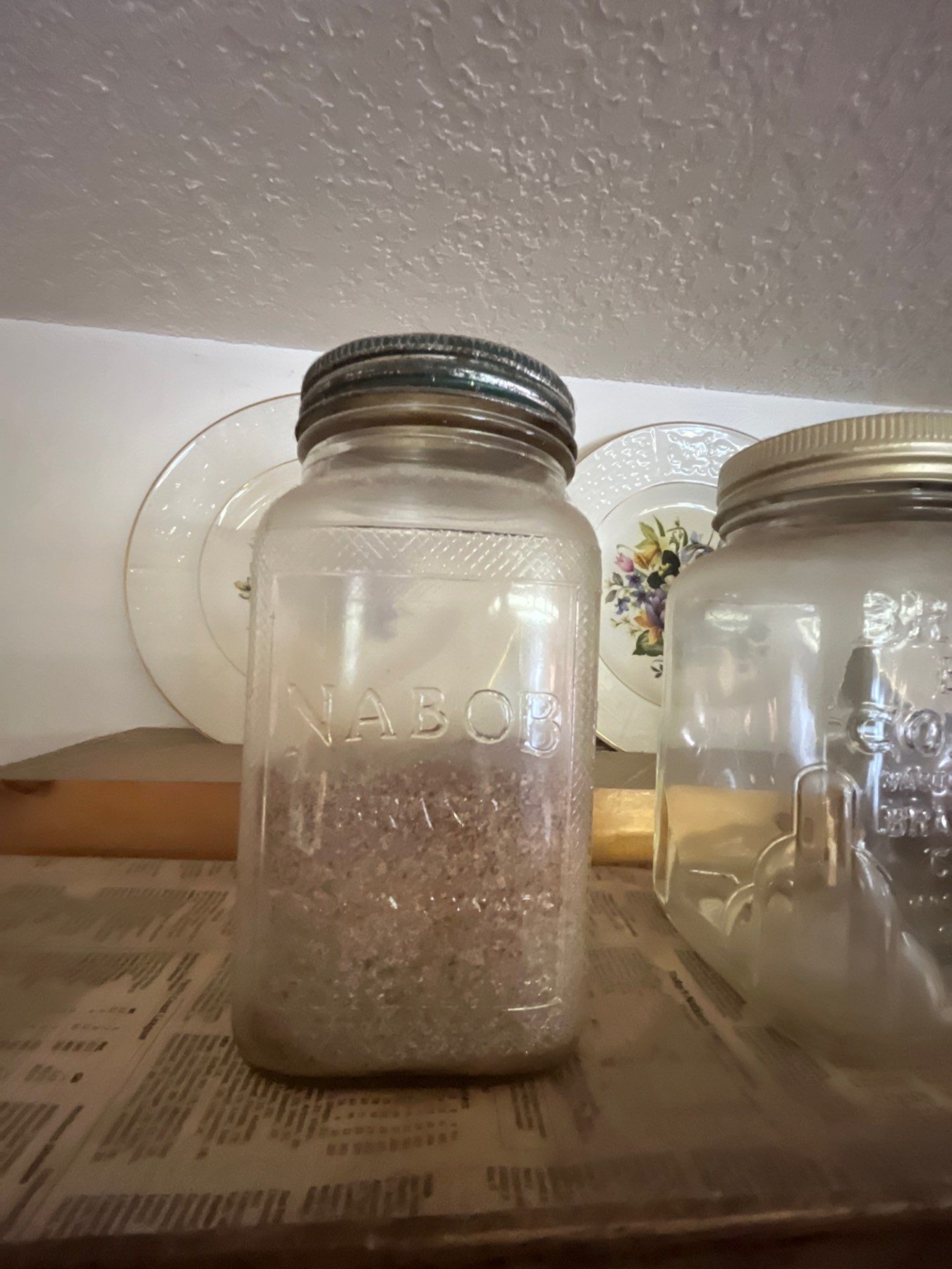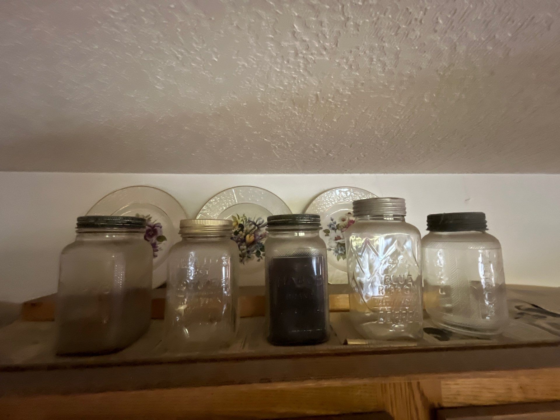 Great group of vintage coffee storage glass canisters from 3 NABOB blue ribbon, coffee and Braids best coffee with three collector plates