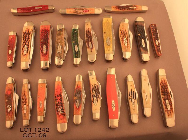Great lot of 23 Case folding knives all in very good to fine condition with many different sizes, types of scales, etc. in an old King Edward Cigar box. Est.: $400-$800.
