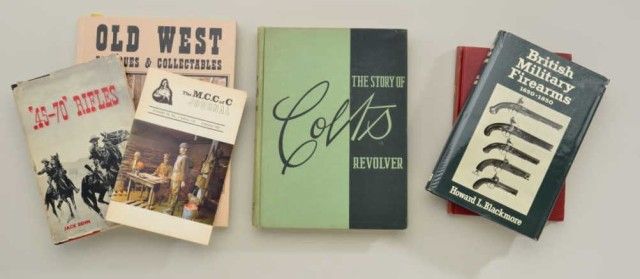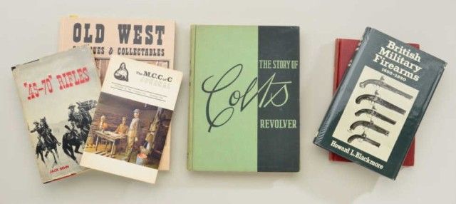 Great lot of approx. 21 firearm collector reference books, mostly out-of-print, many are hardback including the a First Edition, author signed “The Book of Colt Engraving” by Wilson with dust cover; “The Book of ColtFirearms” by Sutherland and Wilson; “Fine Colts of the Dr. Joseph A. Murphy Collection” by Wilson; “Paterson Colt Pistol Variations” by Phillips and Wilson; “Colt Firearms” by Serven; “A Study of the Colt SAA Revolver,by Graham, Kopec and Moore; “The Colt Engraving Book, vols. I & II, by Wilson; “Lever Action Rifles” by Maxwell; “Trapdoor Springfield” by Waite & Ernst; “Colonel Burton’s Spiller & Burr Revolvers” by Norman; etc.; a fine grouping of research materials. Est.: $350-$700.