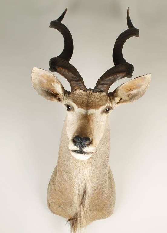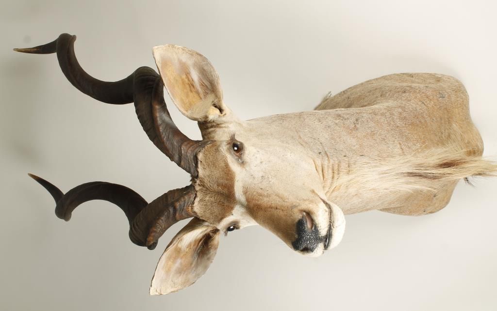 Taken in Transvaal South Africa in 1981. Approx measurements are as follows: Overall height including horns: 53"; Widest point of body: 14"; Back to Nose tip: 36"; Crown to Left horn tip: 30"; Crown to Right horn tip: 30"; Horn tip width: 13". Shows crack on lip and ears are worn. "Tony DaCosta Collection" of noted hunter and owner of Safari Headquarters Ltd. from Carson City, NV.