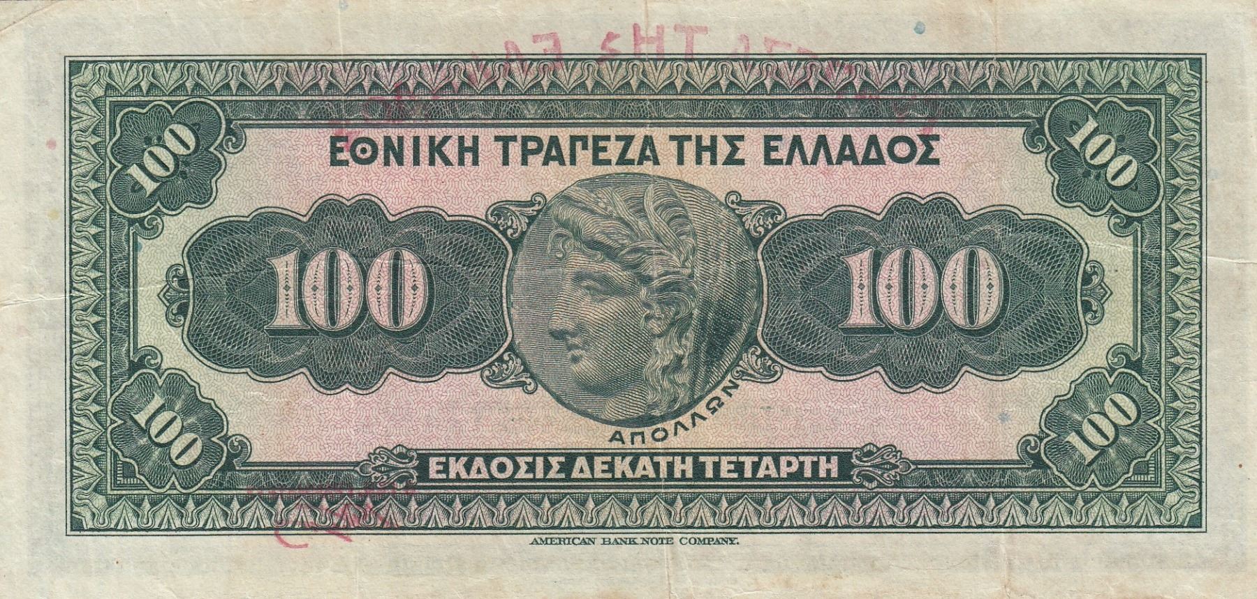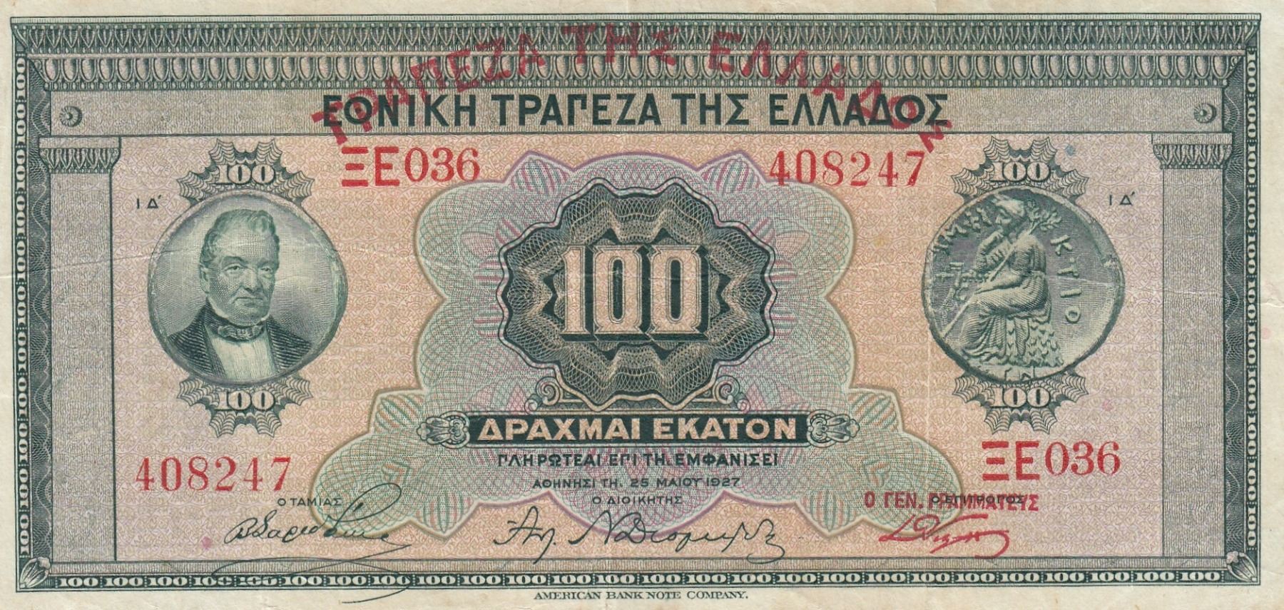 Greece, 100 Drachmai, 1927, VF (+), p98abr/serial number: 408247