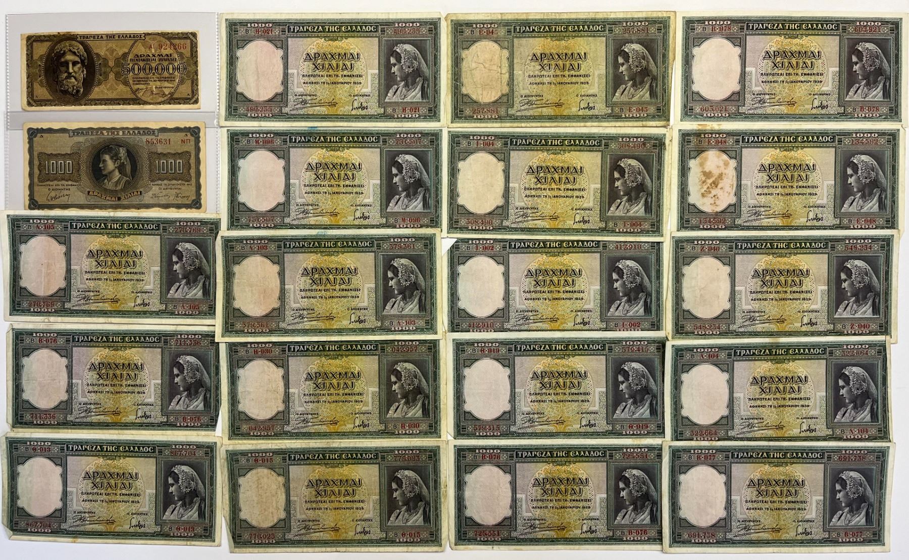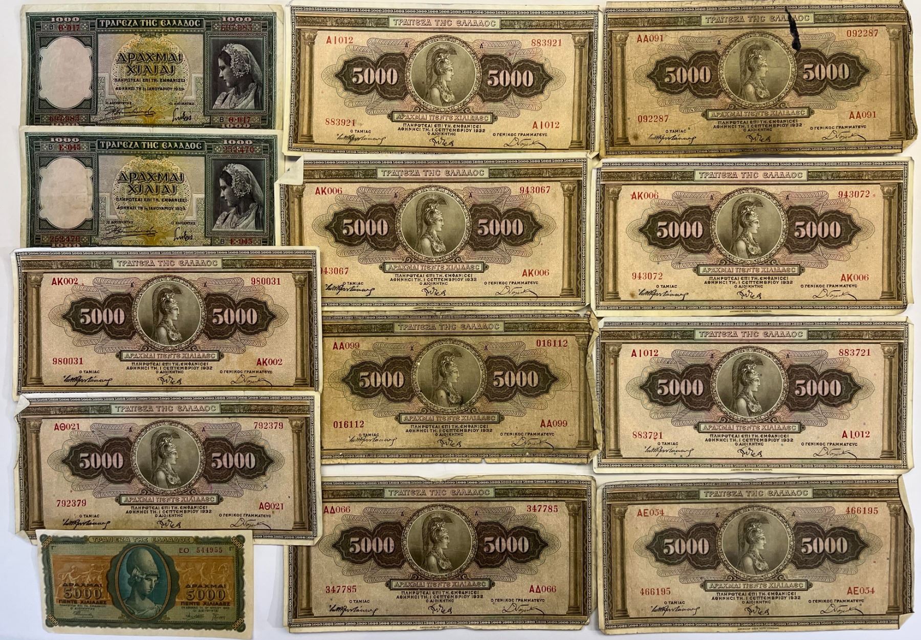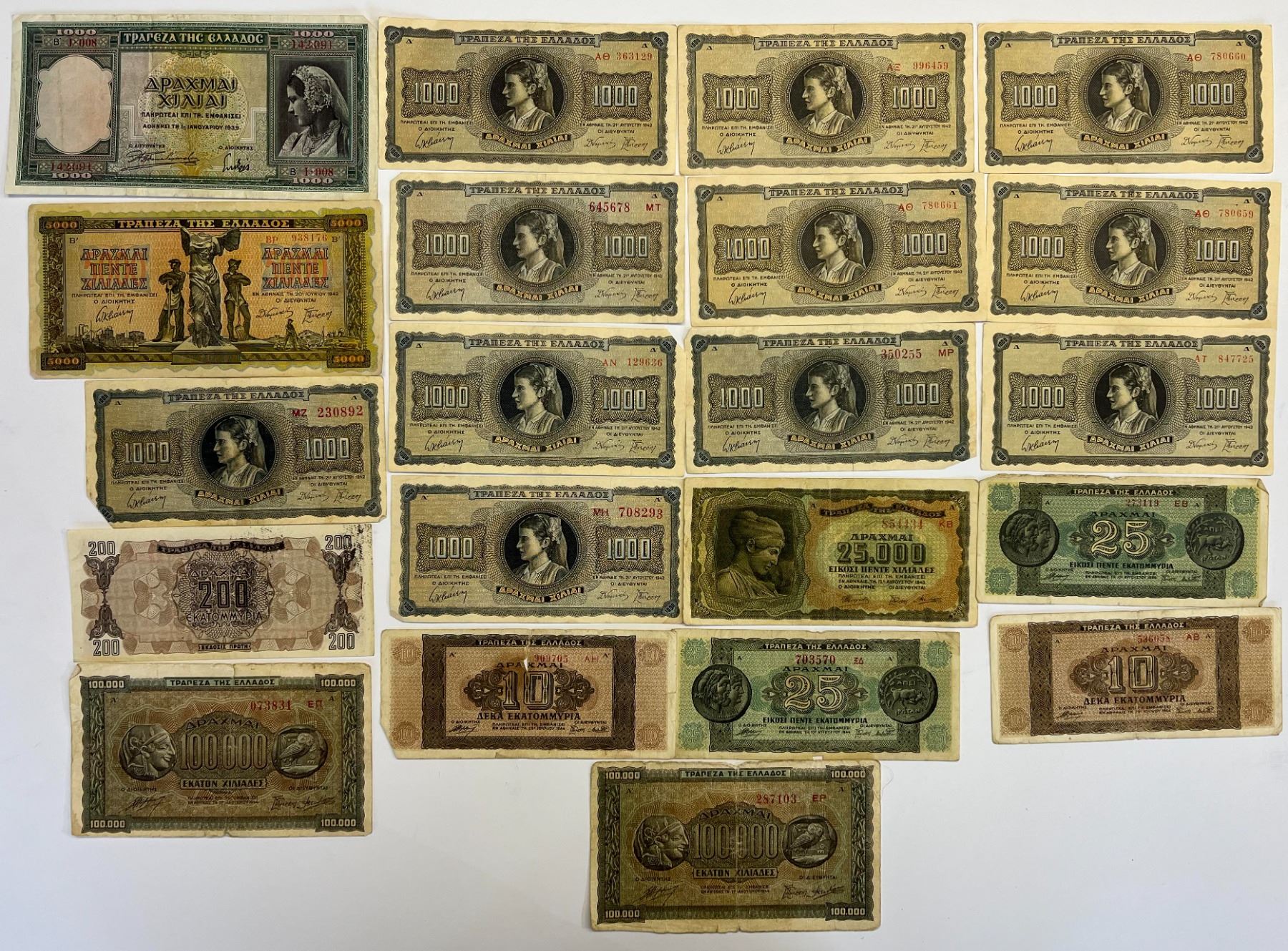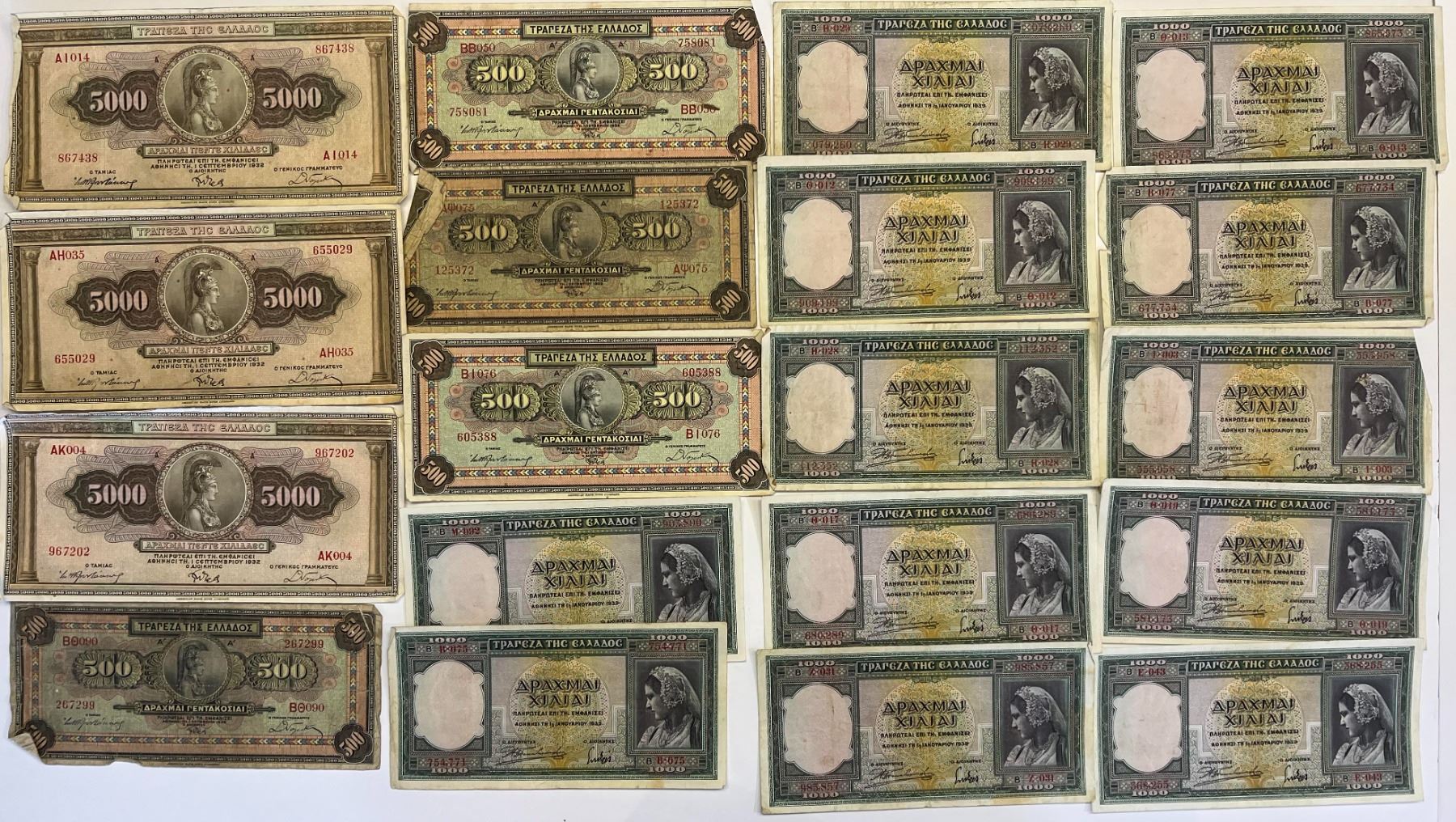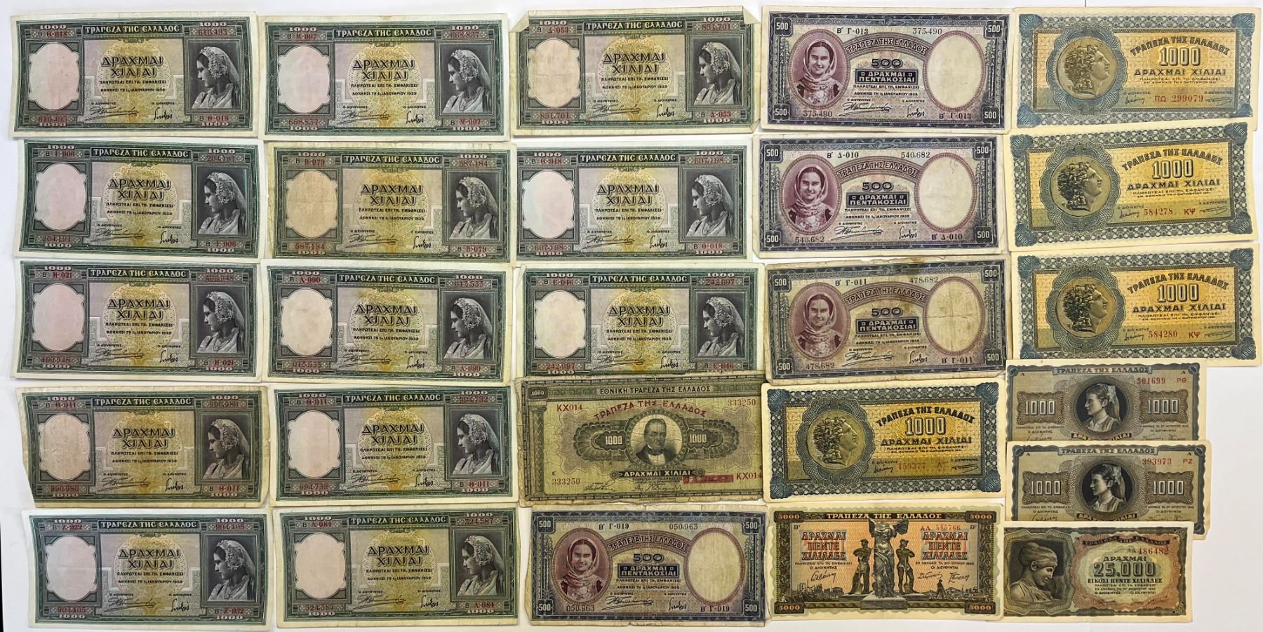 Greece 1932-1943 Large lot of 95+ notes. Various denominations, varieties and grades.