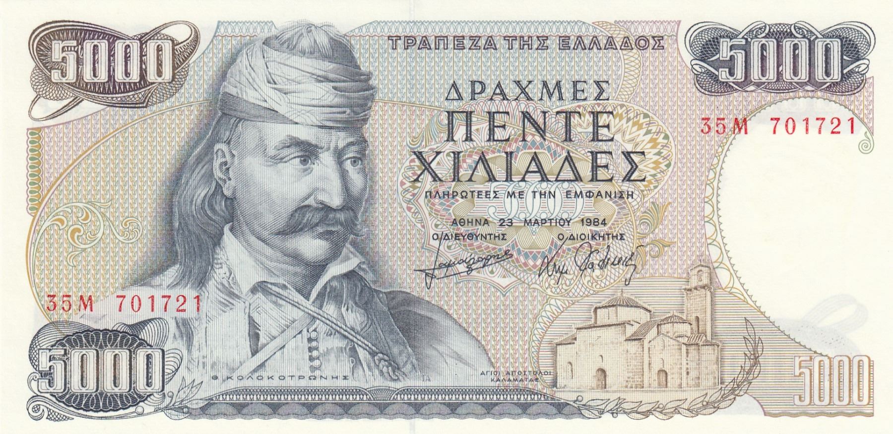 Greece, 5.000 Drachmai, 1984, UNC, p203br/serial number: 35M 701721
