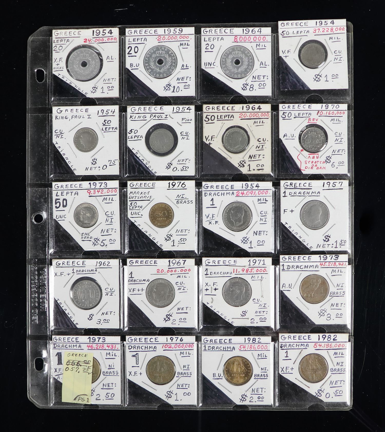 Greece, 1954-90. Lot of 66 Coins, Highlights Include: Bohemia/Moravia 50 Haleru, 1943; Greece 20 Drachmas (2), 1982-90; 50 Drachmas, 1990. Rest are Greek Coins and range from VF-Unc condition. (66). Sold "AS IS" no returns accepted. Shipping charges apply - weight 3 lbs. (PDF for this Lot)