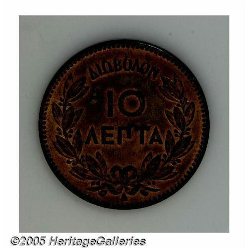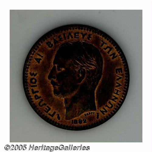 <B>George I 10 Lepta 1882-A, </B></I>KM55, choice lustrous UNC, far more original color than is usually seen on this issue.