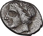 Greece. Illyria, Damastion. Tetrobol, 380-360 BC. Obv. Laureate head of Apollo left. Rev. ????S??O?. Tripod. AG. g. 2.23 mm. 17.00 R. Porous surfaces. About VF. Mondo Greco. Grecia Continentale.Illyria, Damastion. AG. g. 2.23 mm. 17.00 R.