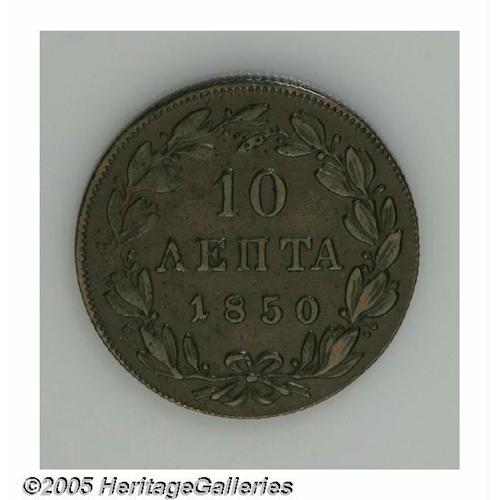 <B>Othon 10 Lepta - Three Dates, </B></I>KM29, 1847, nice brown VF-XF, minor flan flaws, 1849, VF+, typical small planchet flaws, and 1850, nice AVF. <B>Sold as is, no return lot.</B></I>