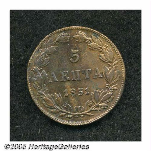 <B>Othon 5 Lepta 1851, </B></I>KM32, XF details but struck on a slightly crudely made planchet and with some light oxidation cleaned away.