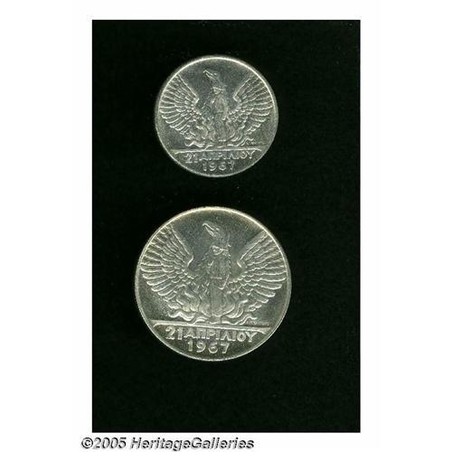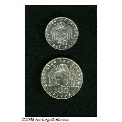 <B>Revolution of 1967 Silver Pair (1970), </B></I>KM93 50 Drachmai, choice BU, and KM94 100 Drachmai, choice BU.