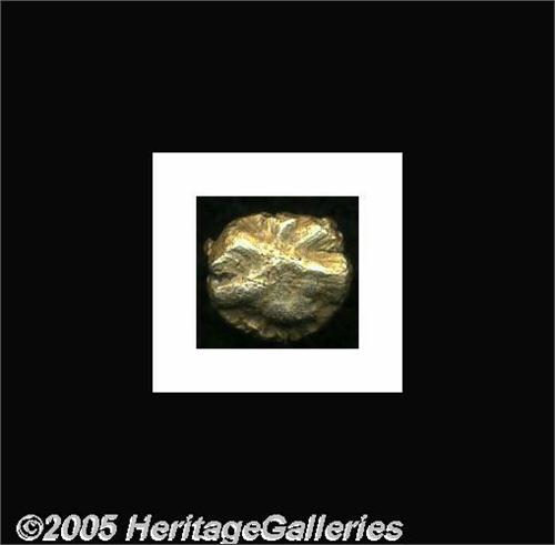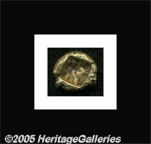 <B>Asia Minor, Uncertain mint.</B></I> Ca. 7th-6th centuries B.C. EL 1/48 stater (6 mm, 0.29 g). Aeginetan standard. Uncertain / Quadrilateral incuse punch. Klein -; Rosen 354. VF.