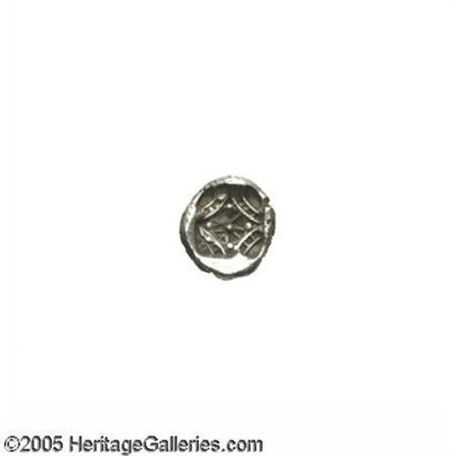<B>Caria, Kindya.</B></I> Ca. 510-490 B.C. AR tetrobol (11 mm, 1.98 g). Samian standard. Head of ketos left / Stellate pattern in latticed frame; all within incuse. SNG Finland (Keckman) 920; H. Kagan and B. Kritt, "The coinage of Kindya," <I>NC</B></I> (1995), pl. 47, 1-3; Asyut 687; Rosen 617. Toned VF.