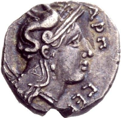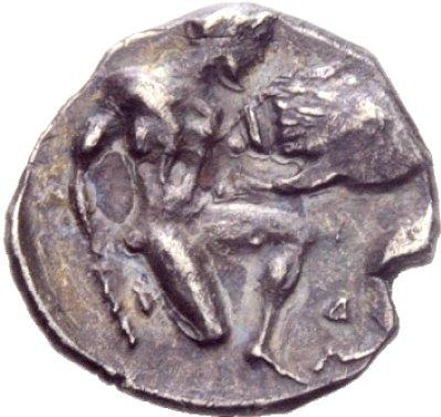 Greek Coins, Apulia, Arpi, Diobol ca. 325-275, AR 0.95 g. Helmeted head of Athena r. Rev. Heracles r., fighting lion. McClean 397 (these dies). Historia Numorum Italy 367. Rare. Toned and good very fine