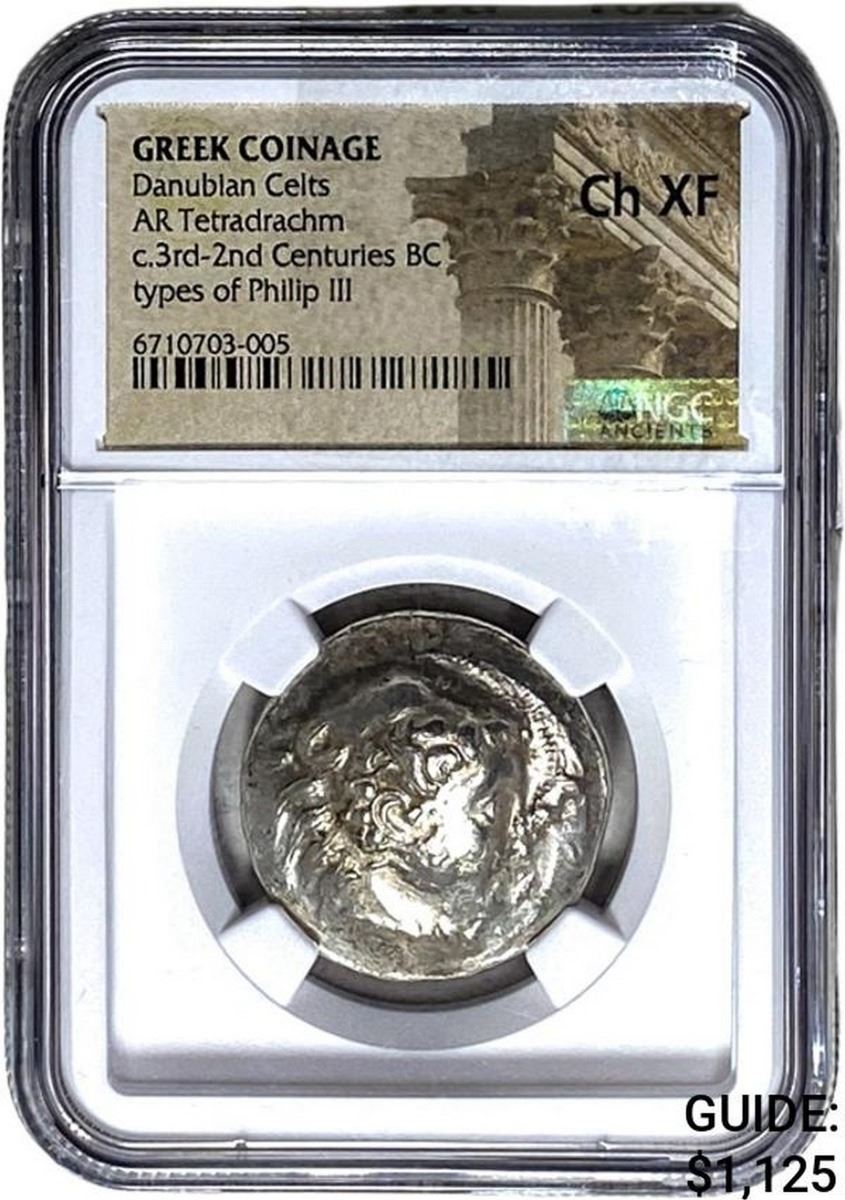 Greek Dan. Celts, c.3rd-2nd Cent. BC Silver Tetradrachm NGC Ch XF