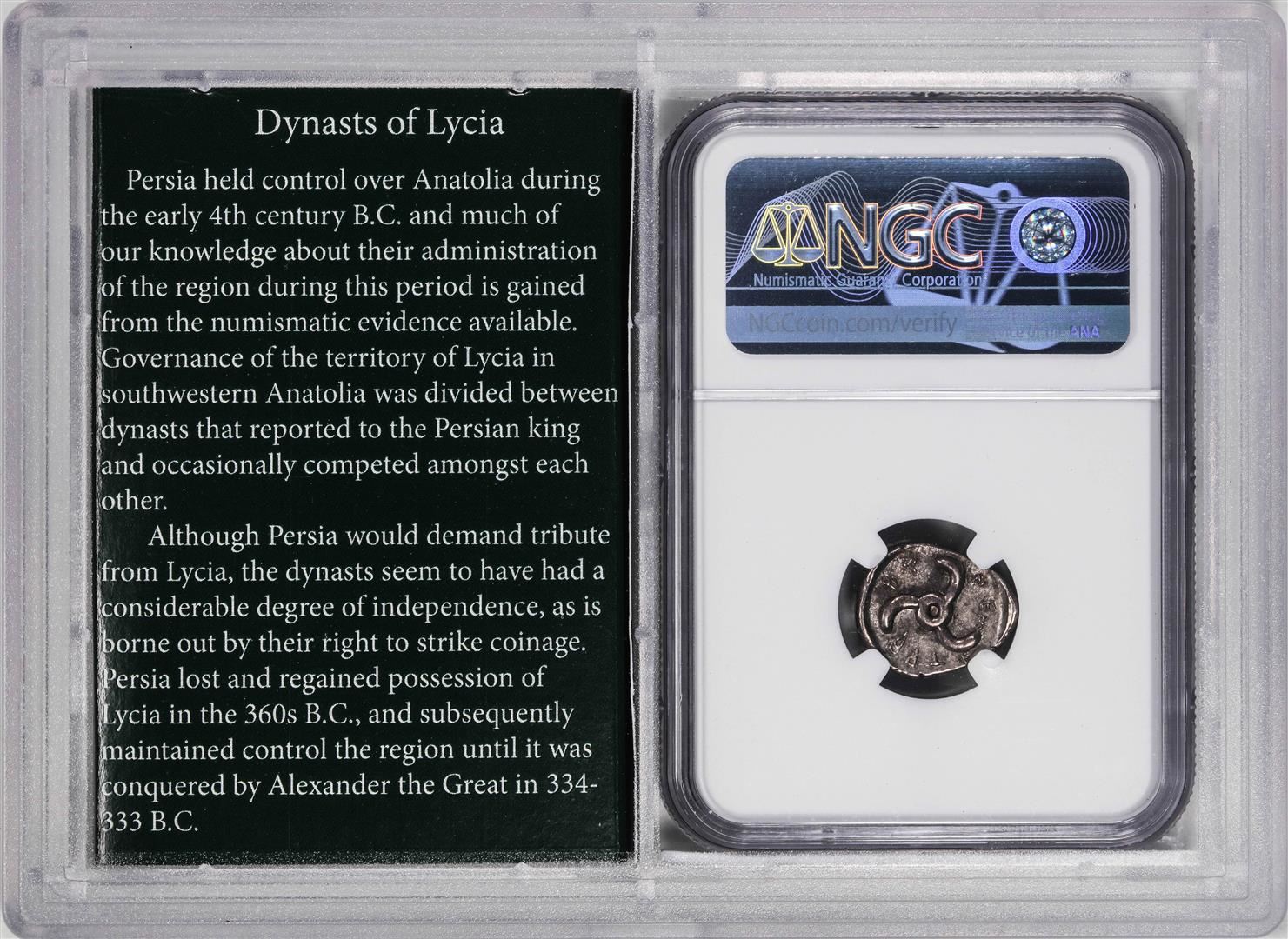 One Greek Dynasts of Lycia Trbbenimi c.390-375 BC AR Third-Stater Ancient Coin NGC VF. NGC Certified.
