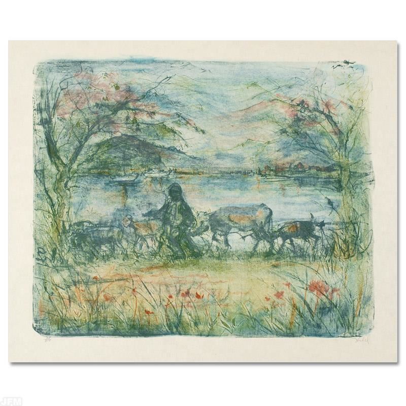 Wild lines and muted colors make Edna Hibel's art stand out in any room. "Greek Farmer" is a limited edition lithograph on paper, numbered and hand signed by Hibel. Includes Certificate of Authenticity! Measures approx. 35.5" x 25" (border) 24" x 19" (image).