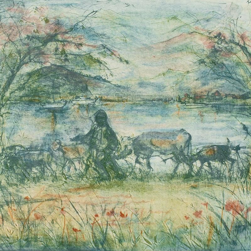 "Greek Farmer" Limited Edition Lithograph by Edna Hibel, Numbered and Hand Signe