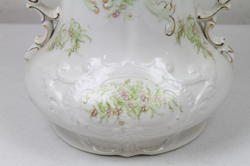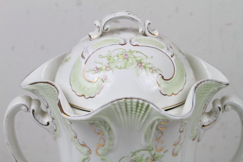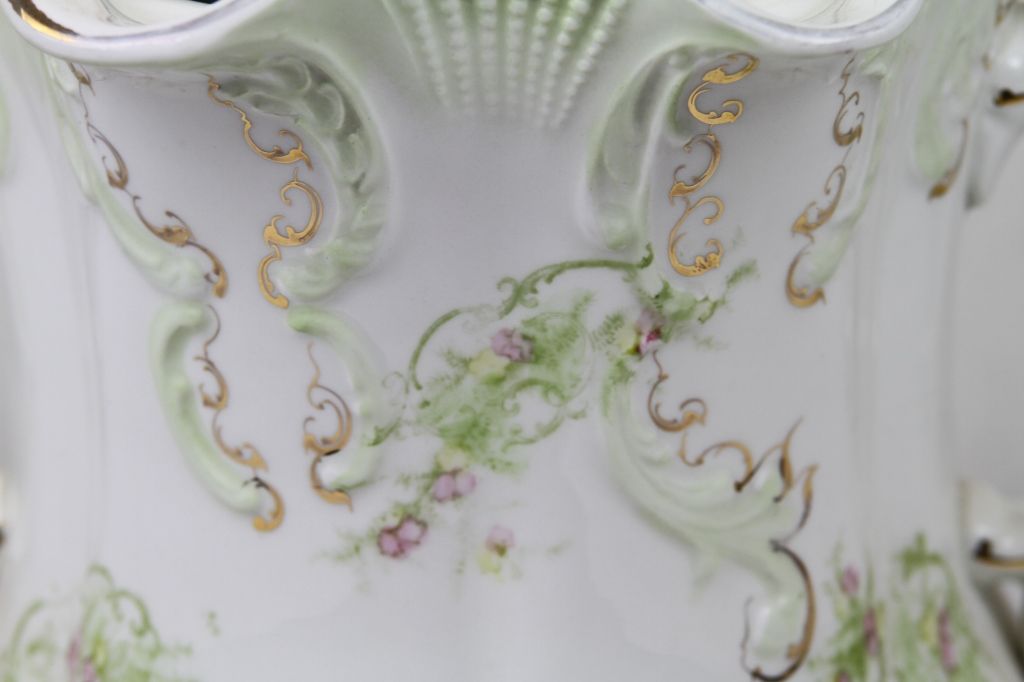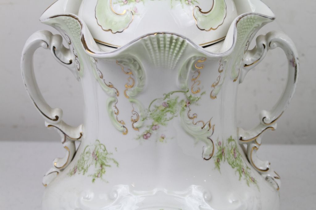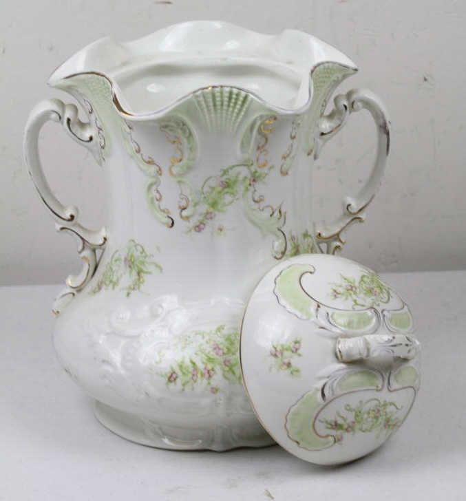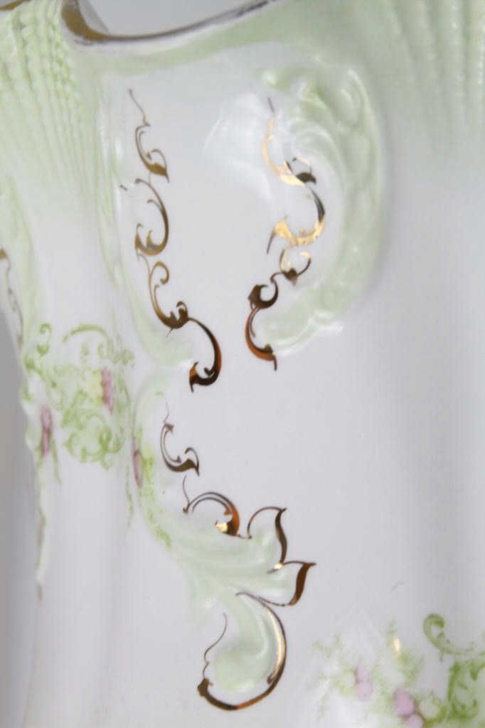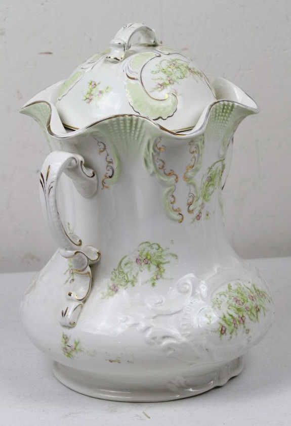 Greek Gold Leaf Pitcher This is a hand painted pitcher with the lid. In great condition with no cracks or chips. Marked "Greek" on bottom. Measures 15" tall.