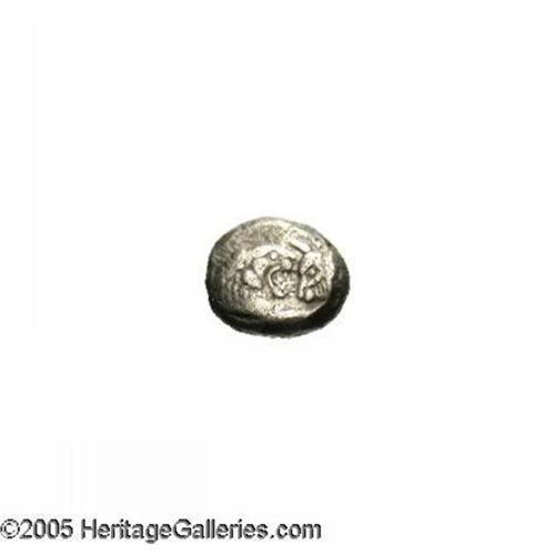 <B>Lydian Kingdom. Time of Kroisos.</B></I> Ca. 561-546 B.C. AR siglos (15 mm, 5.24 g). Confronted foreparts of a roaring lion and a bull / Double incuse punch. Rosen 663-5; SNG Copenhagen 456. Good Fine, light porosity.